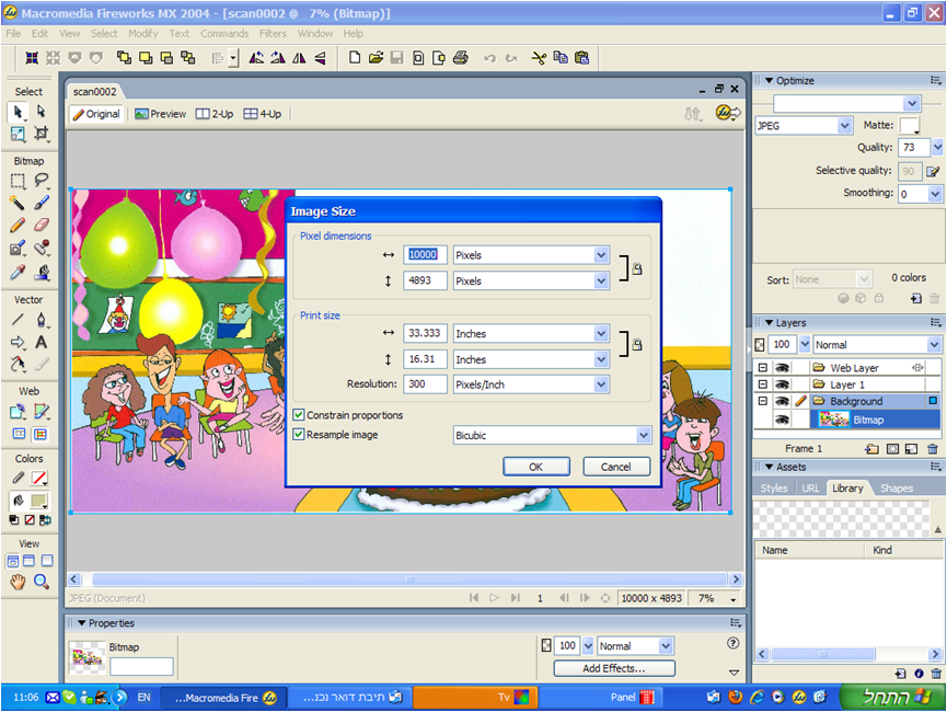 מצייר צובע וסורק את התמונה לתוכנת firework mx 2004