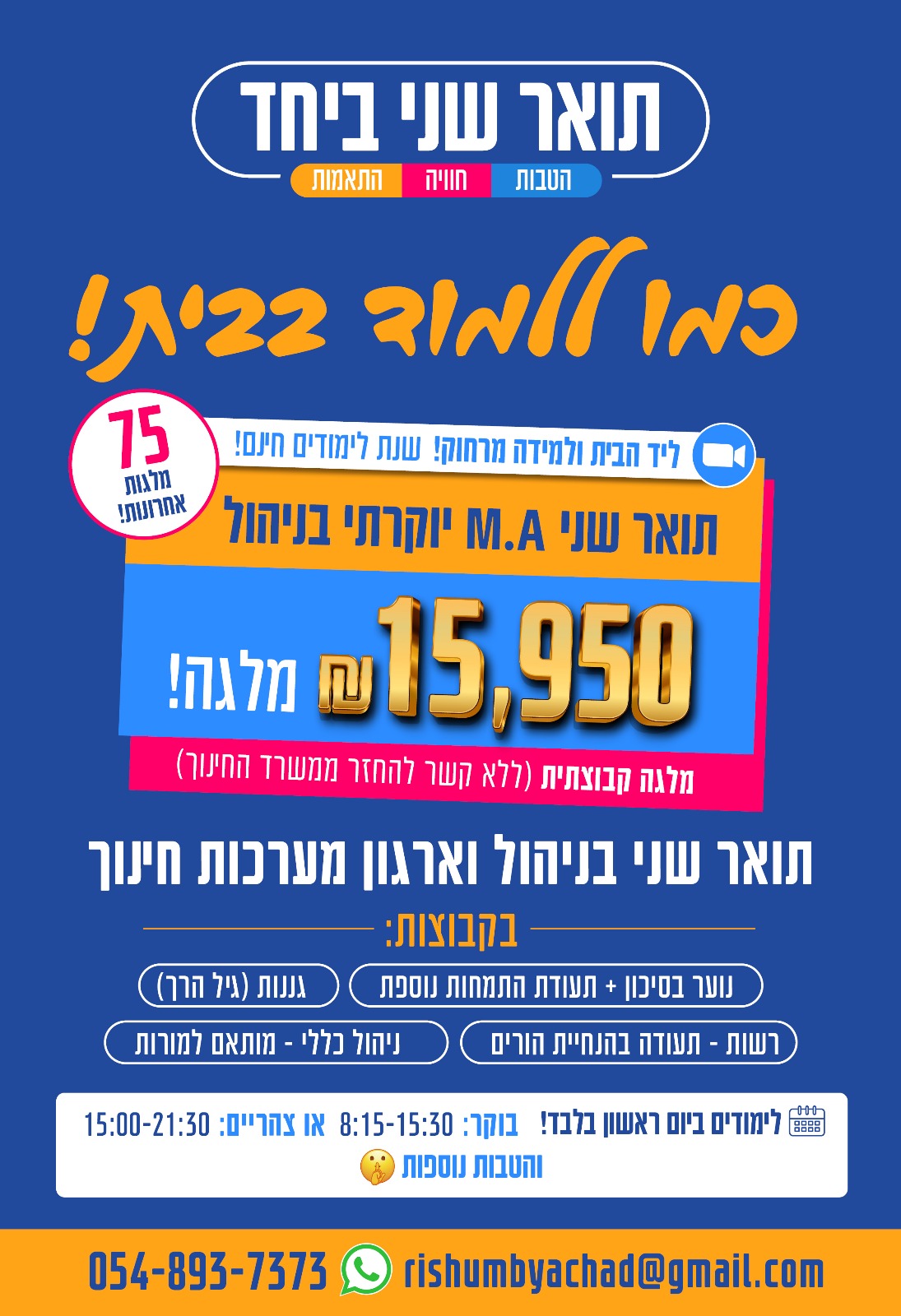 תתקשרי אליהם ותבררי - הם מציעים תנאים חלומיים למי שרוצה תואר שני בחינוך.