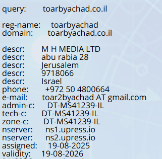 פרטי יצירת קשר, מייל עם דומיין פרטי, אפילו כתובת.