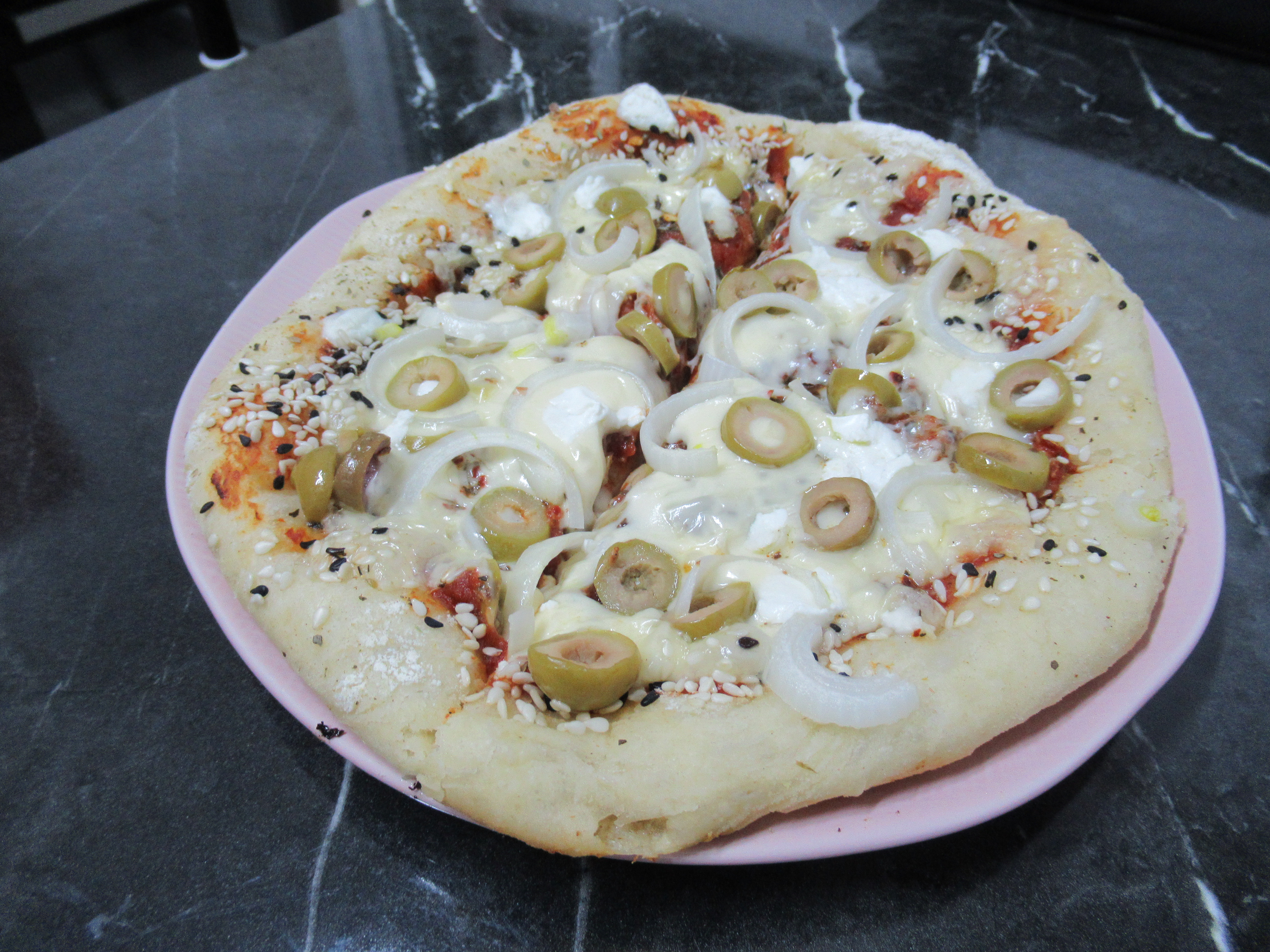 זה פיצה מטורפת ומאוד אוורירית בבצק שלה, אני עשיתי את זה לפיצות אישיות