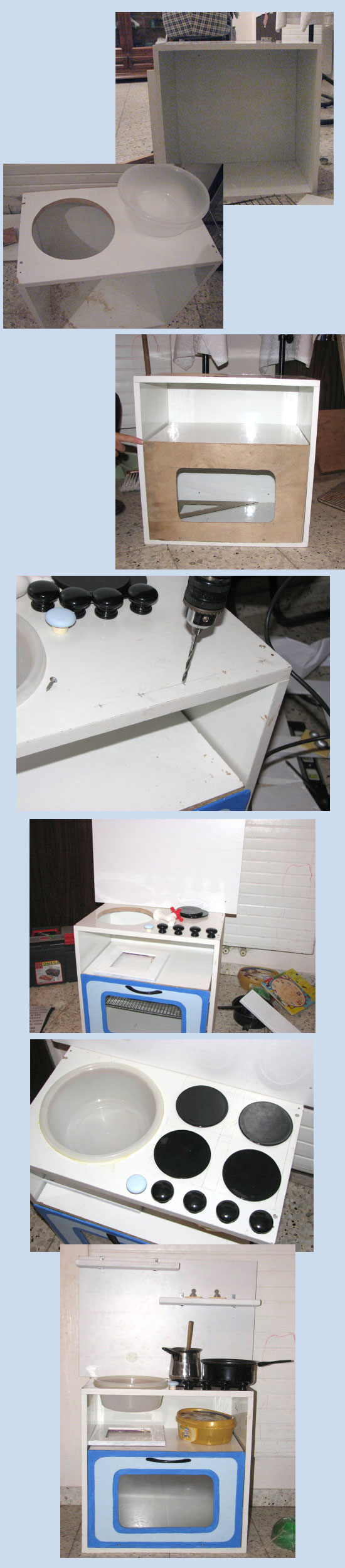 עוד באותו שבוע התחלנו לעבוד על זה (אני בצד של התכנון, העיצוב, הצביעה, איסוף חומרים, ובעלי בצד הקדיחות, הניסורים וההברגות המסובכות יותר), הילדים השתתפו, קדחו, הבריגו, צבענו יחד, הלכנו יחד לקנות חלקים (את הרוב המכריע אילתרנו מדברים שהיו בבית/מצאנו)