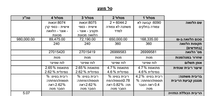 נניח ויש בבעלותי דירה בשווי מליון ש"ח, ומשכנתא קיימת ע"ס 300 אלף ש"ח. אני מעוניין להוציא משכנתא נוספת לצורך כל שהוא (נישואי ילדים \ לקנות ארטיקים \ כל סיבה אחרת) בסכום הגבוה ביותר ובריבית הנמוכה ביותר.