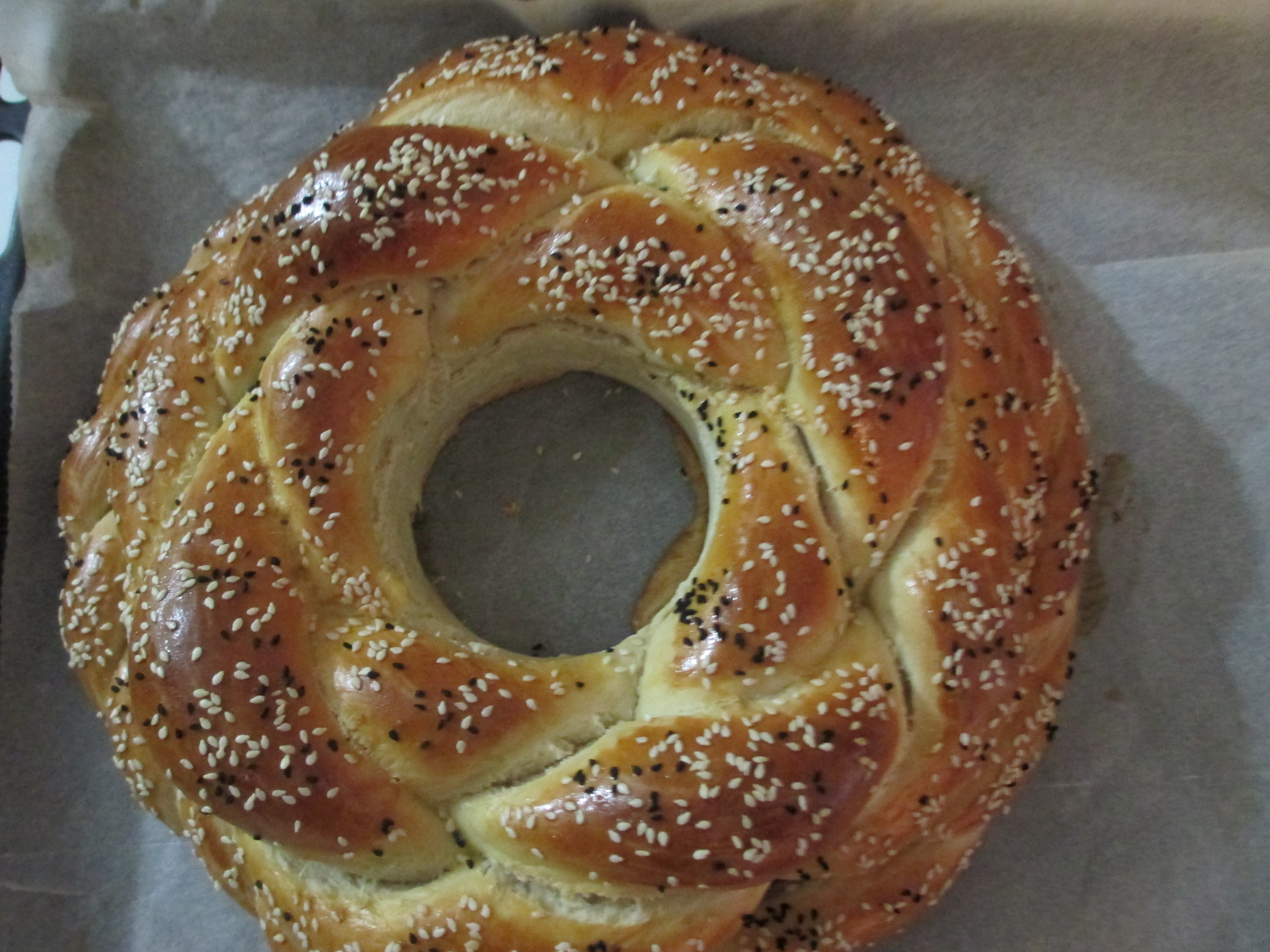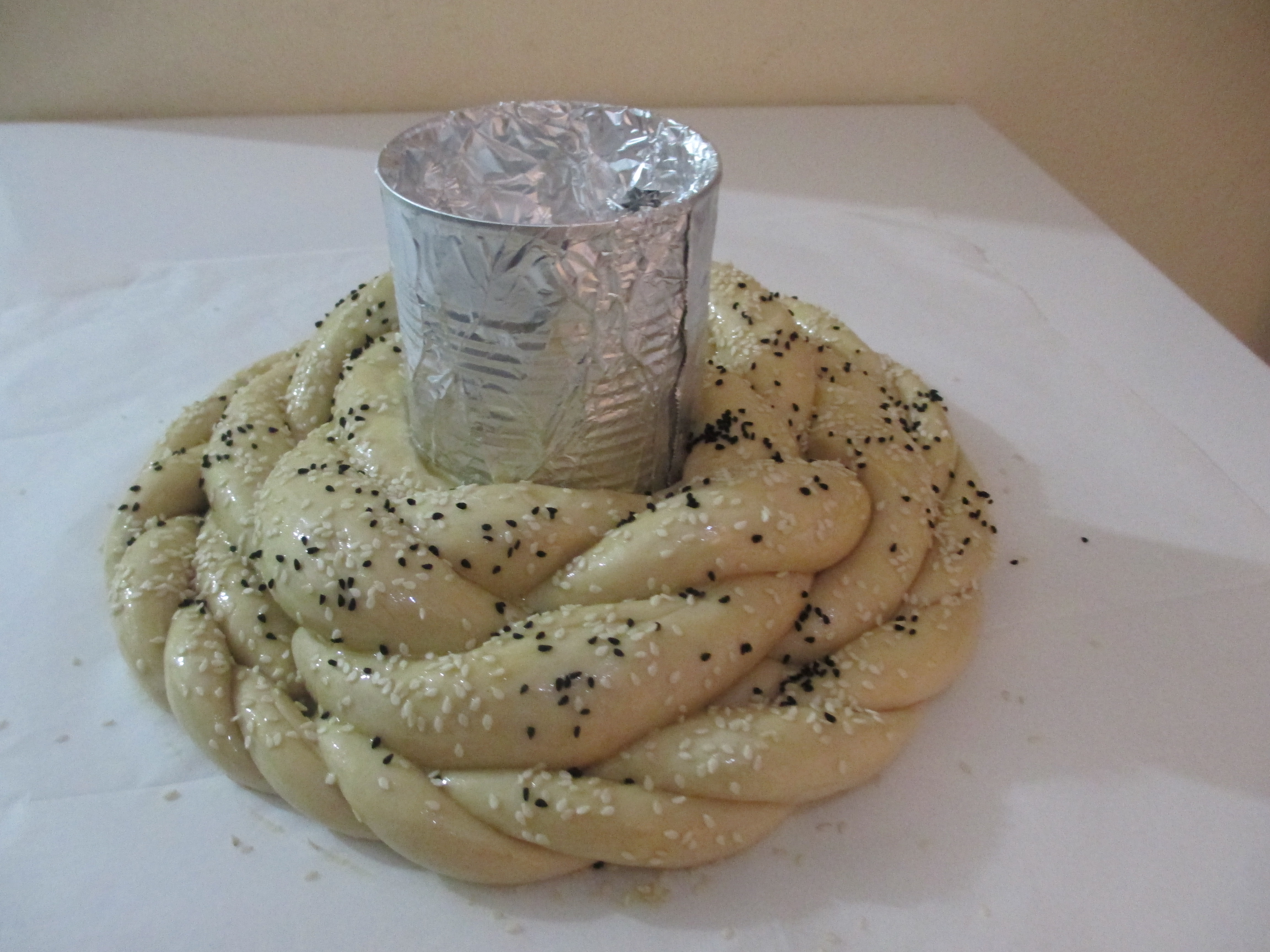 בחלה שבתמונה הוספתי גם שתי רצועות מגולגלות סביב החלה,