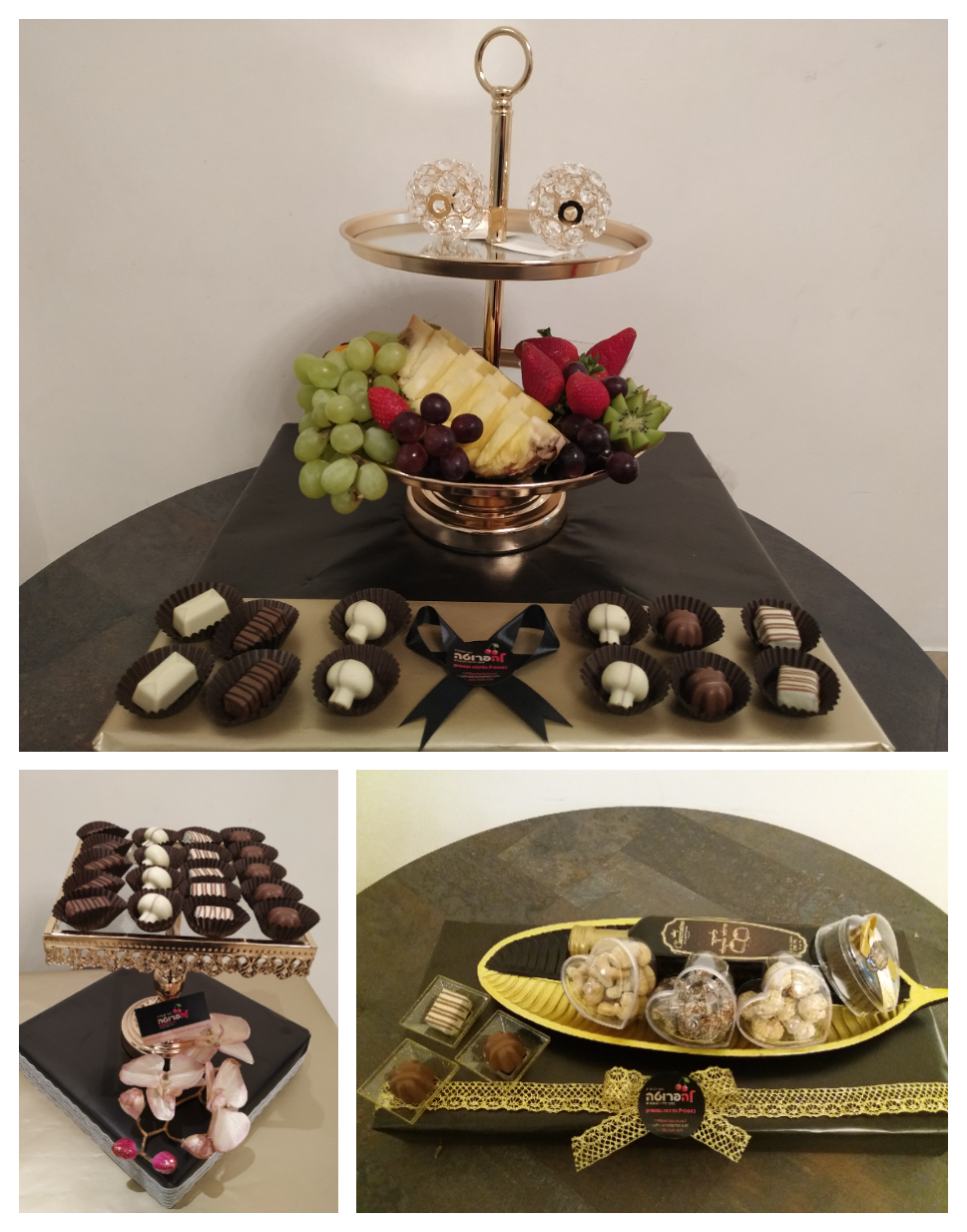 2. קיבלנו הורים מזהב על מגש של כסף- קנינו מגש מפלסטיק בצבע כסף ועטפנו אצבעות שוקולד על נייר זהב (מטילי זהב...) והנחנו על המגש.