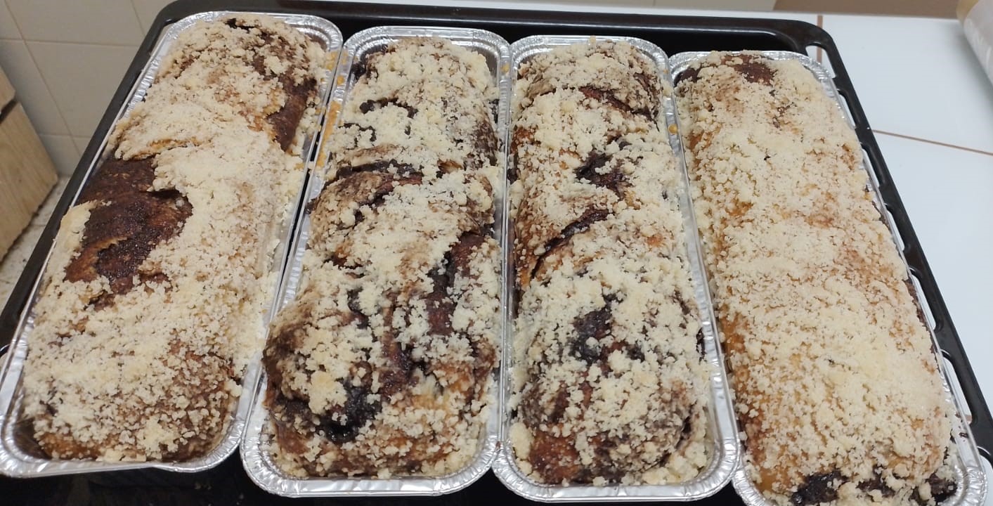מפזרים מעל ובאופן אחיד חצי מכמות תערובת הסוכר והקינמון