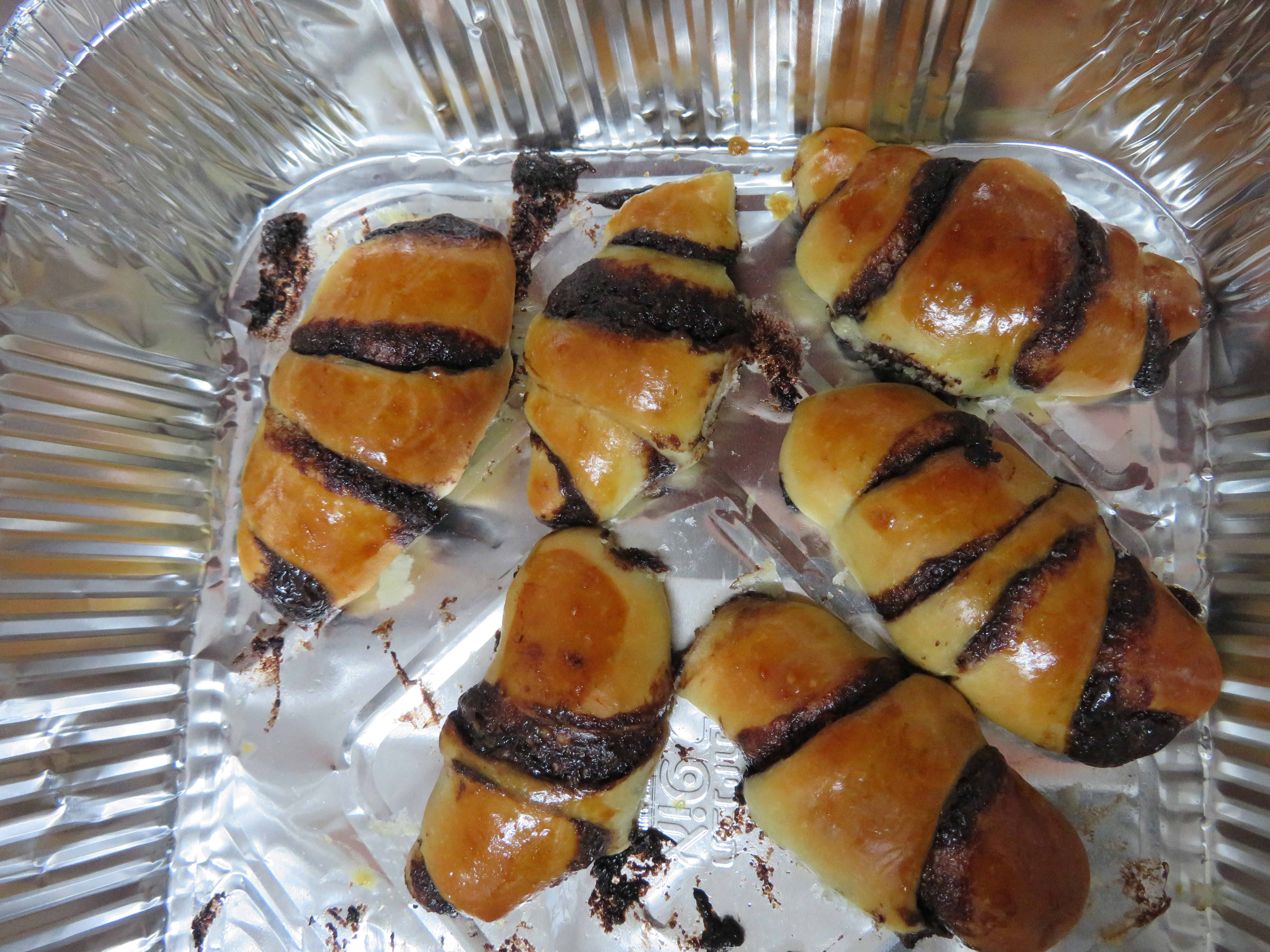 בעזרת מברשת סיליקון מורחים ומשקים את הבצק בחצי מכמות השמן של המילוי