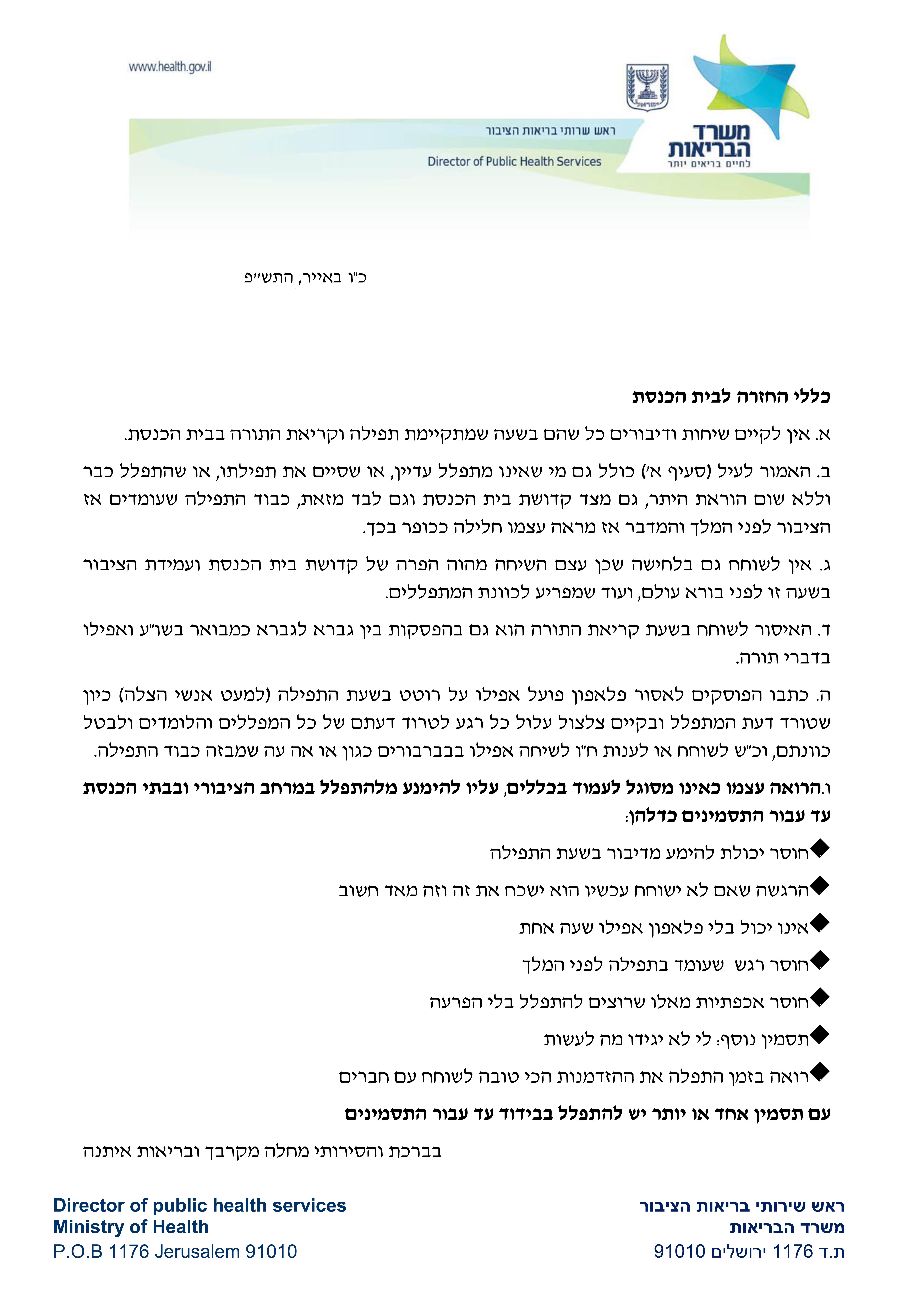 שיתוף מתווה החזרה לבתי הכנסת
