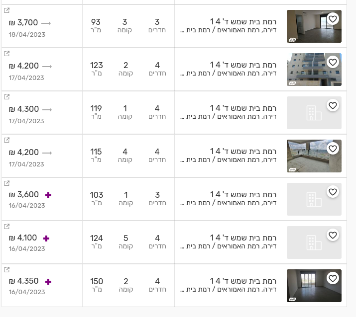 רשימה עם דירות מעודכנות מהשבוע.
