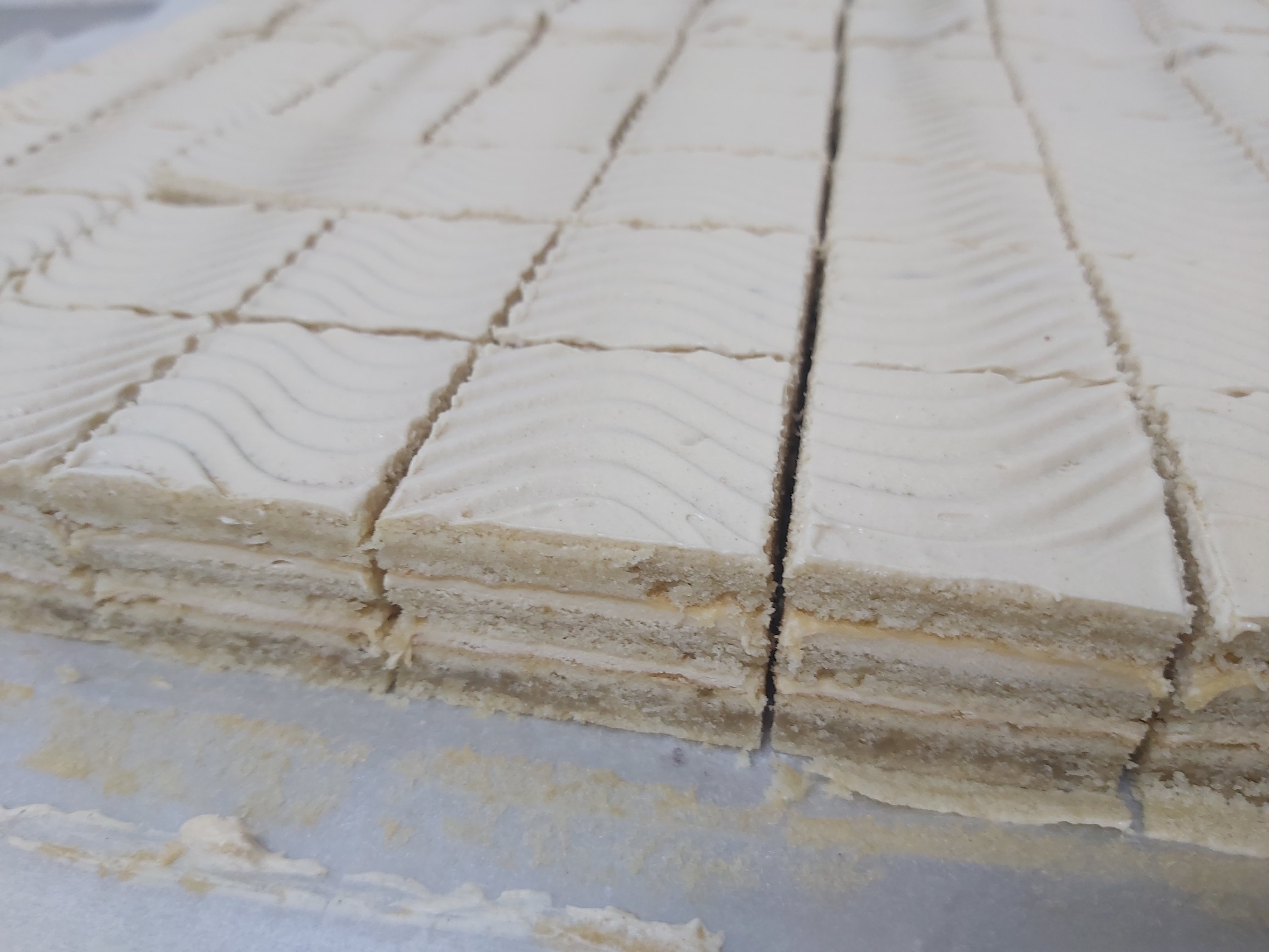 חלקי את הבלילה ל3 חלקים ושטחי כל חלק על תבנית אפיה מרופדת בניר אפיה