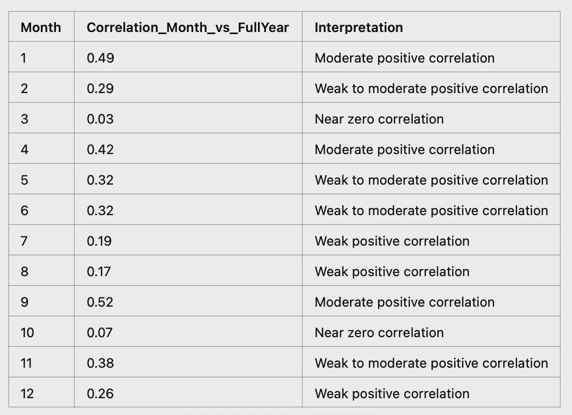 בעיקרון, נראה שזה לא רק ינואר. גם לספטמבר יש קורלציה גבוהה עם תוצאות של השנה