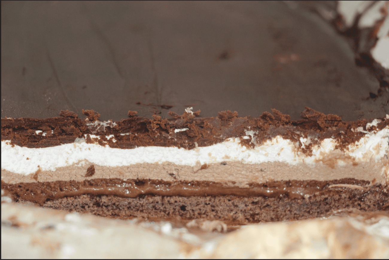 חלק ראשון - מערבבים עם החלק השלישי ששמור במקרר, שוטחים על העוגה מהמקפיא ומחזירים להקפאה.