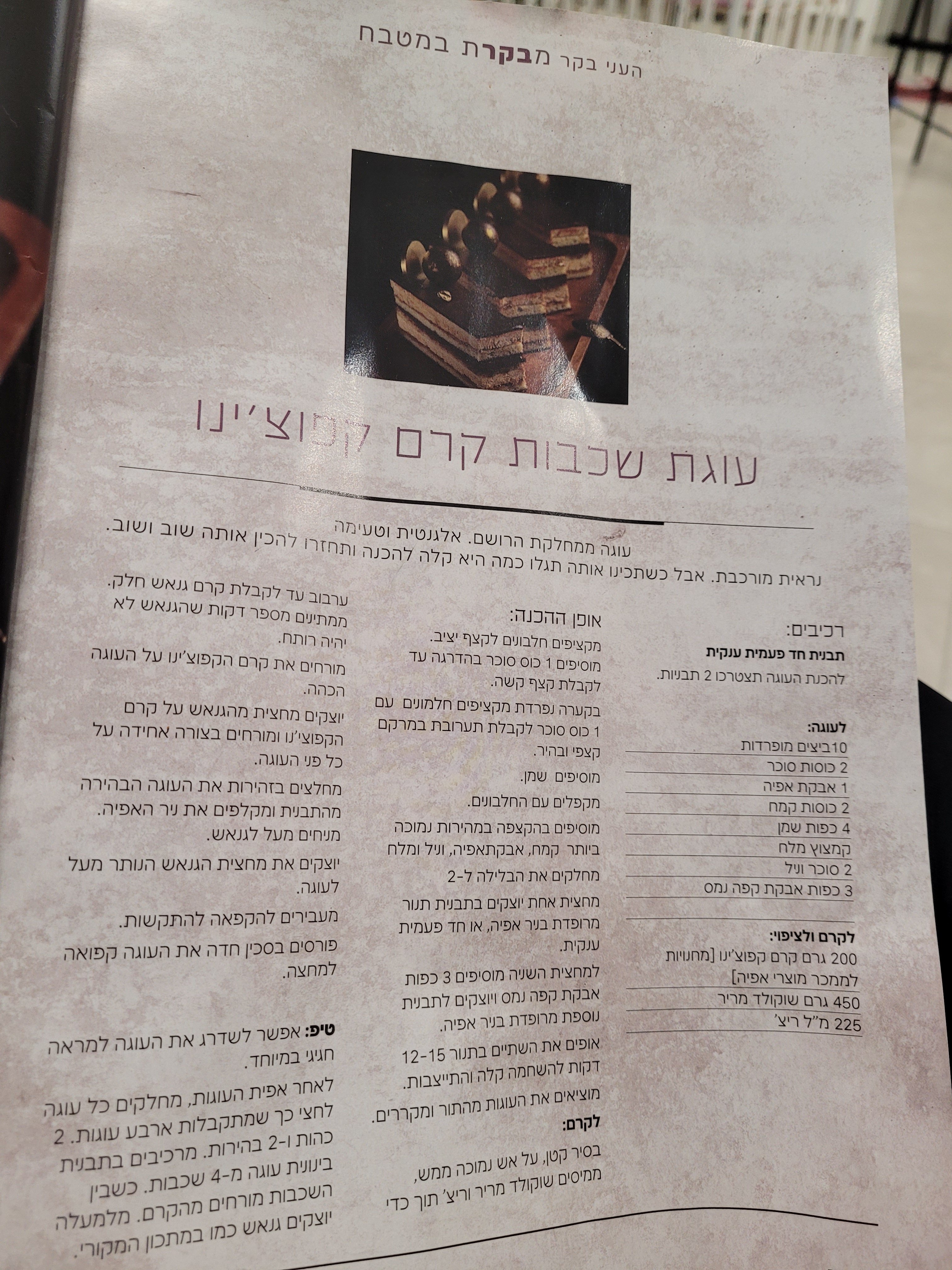 עזרה מתכון לעוגת קפוצ'ינו