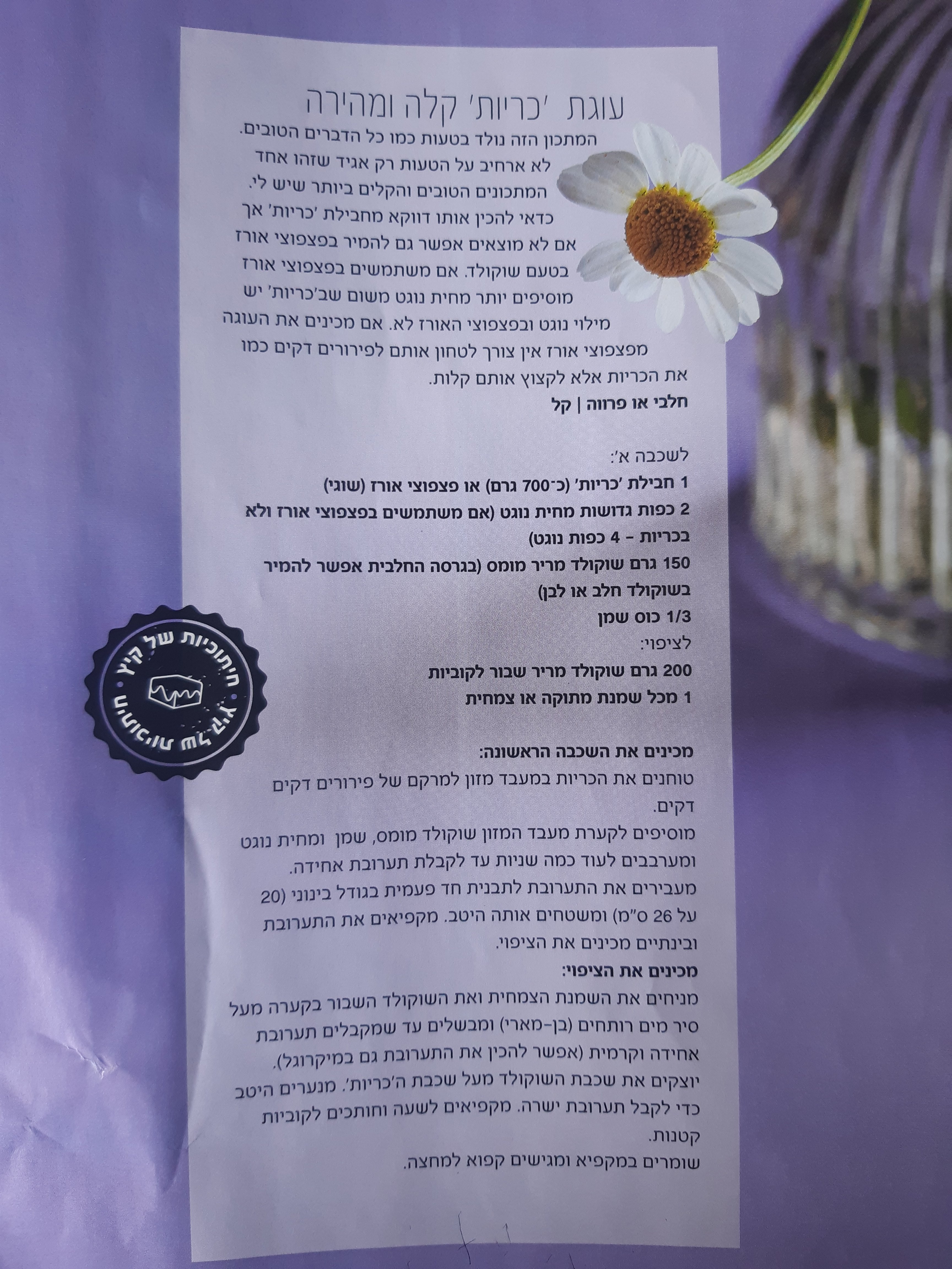 דרוש מידע מתכון עוגה עם כריות מעיתון בתוך המשפחה