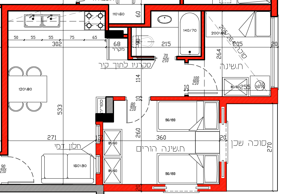 (לי מפריע הקטע של אור\איורור למטבח, אבל אולי זה תקין?)