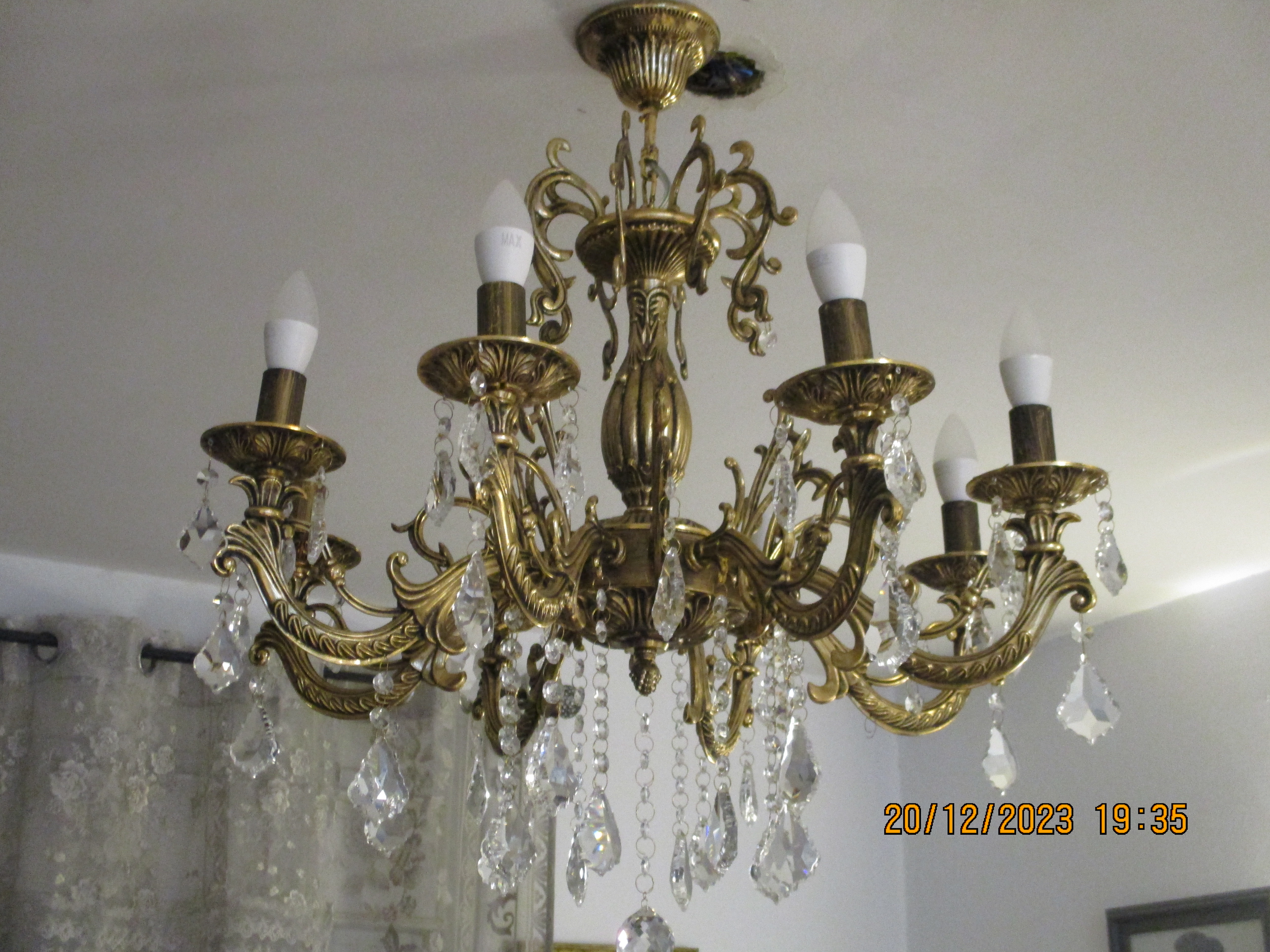 נברשת סלונית מהממת ביופייה בצבע זהב- מט עם קריסטלים...
