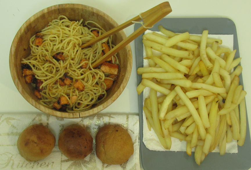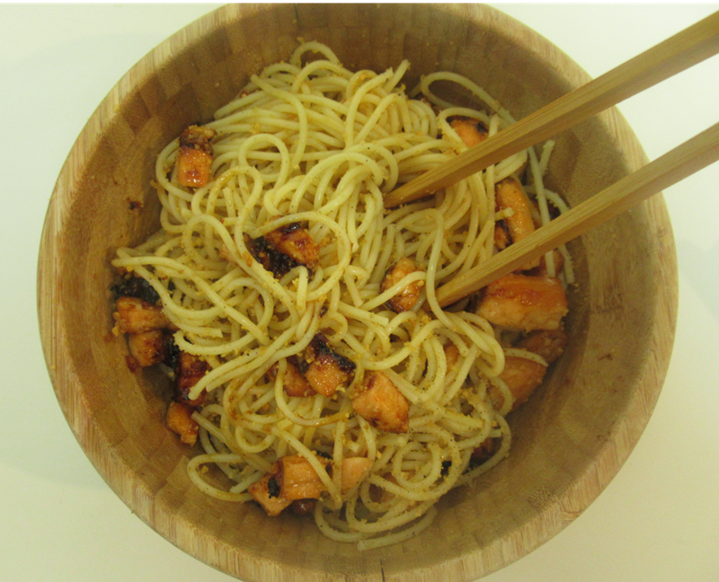 ואז אותו הדבר נודלס עם קוביות סלמון ברוטב סיני כזה או אחר (בדרך כלל רוטב סויה אמיתי + קצת סילאן + שמן זית + תבלינים: שום, פלפל שחור, ג'ינג'ר טחון)