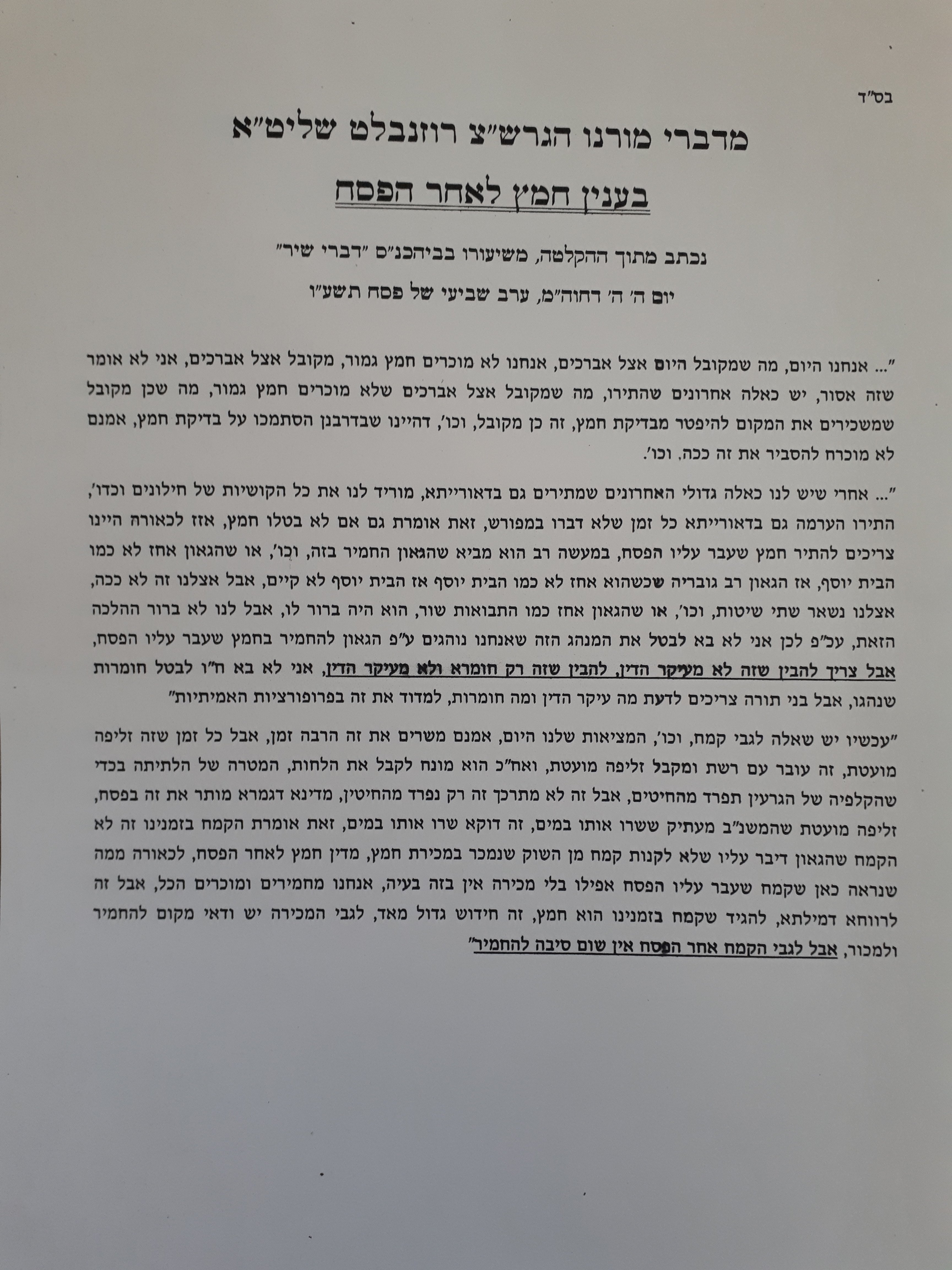 מכתב ר' חיים גריינימן ודברי רבה של בני ברק בעניין: