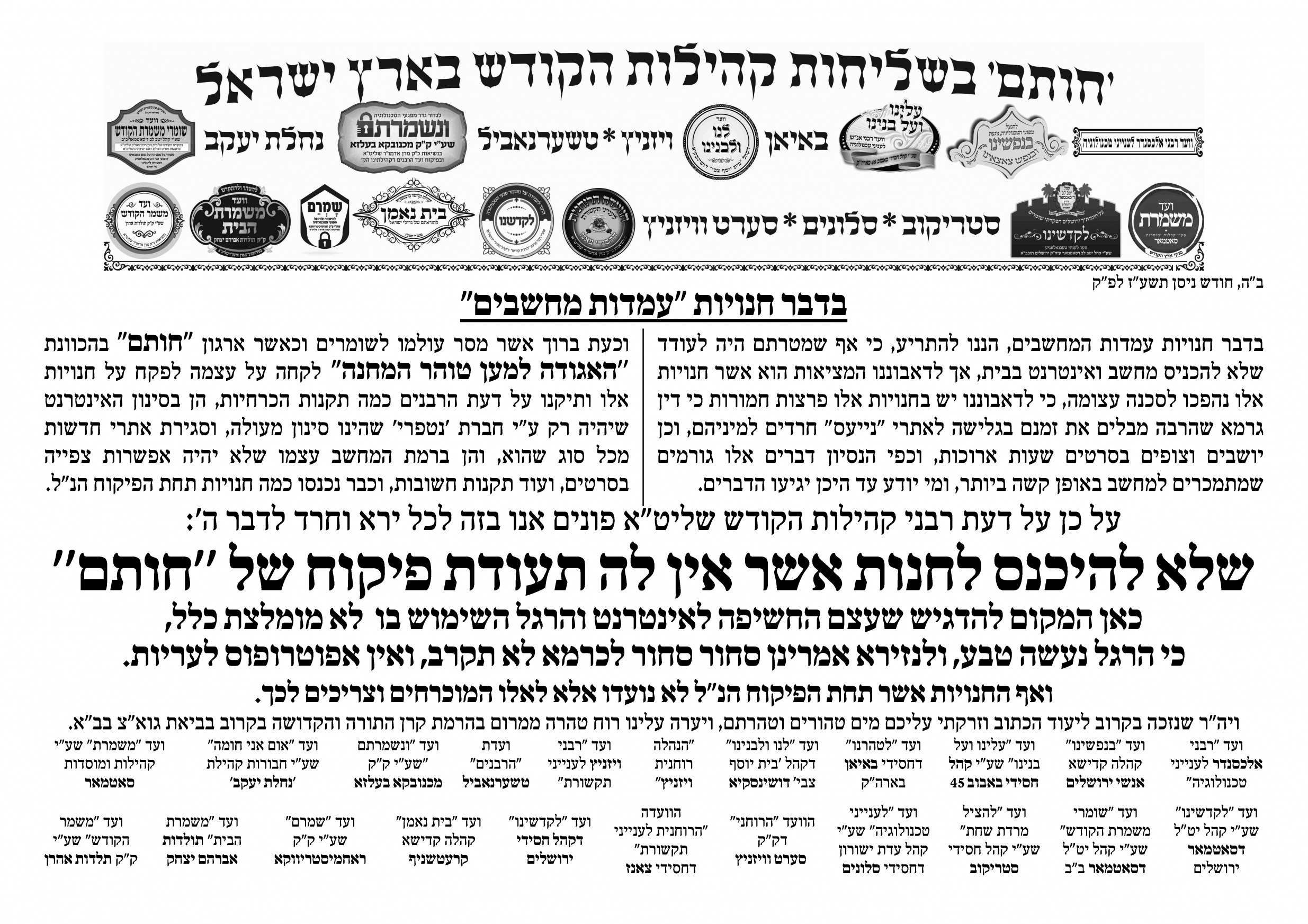 אבל מה זאת אומרת שאין לועדת הרבנים שום הכשר על חסימת אינטרנט