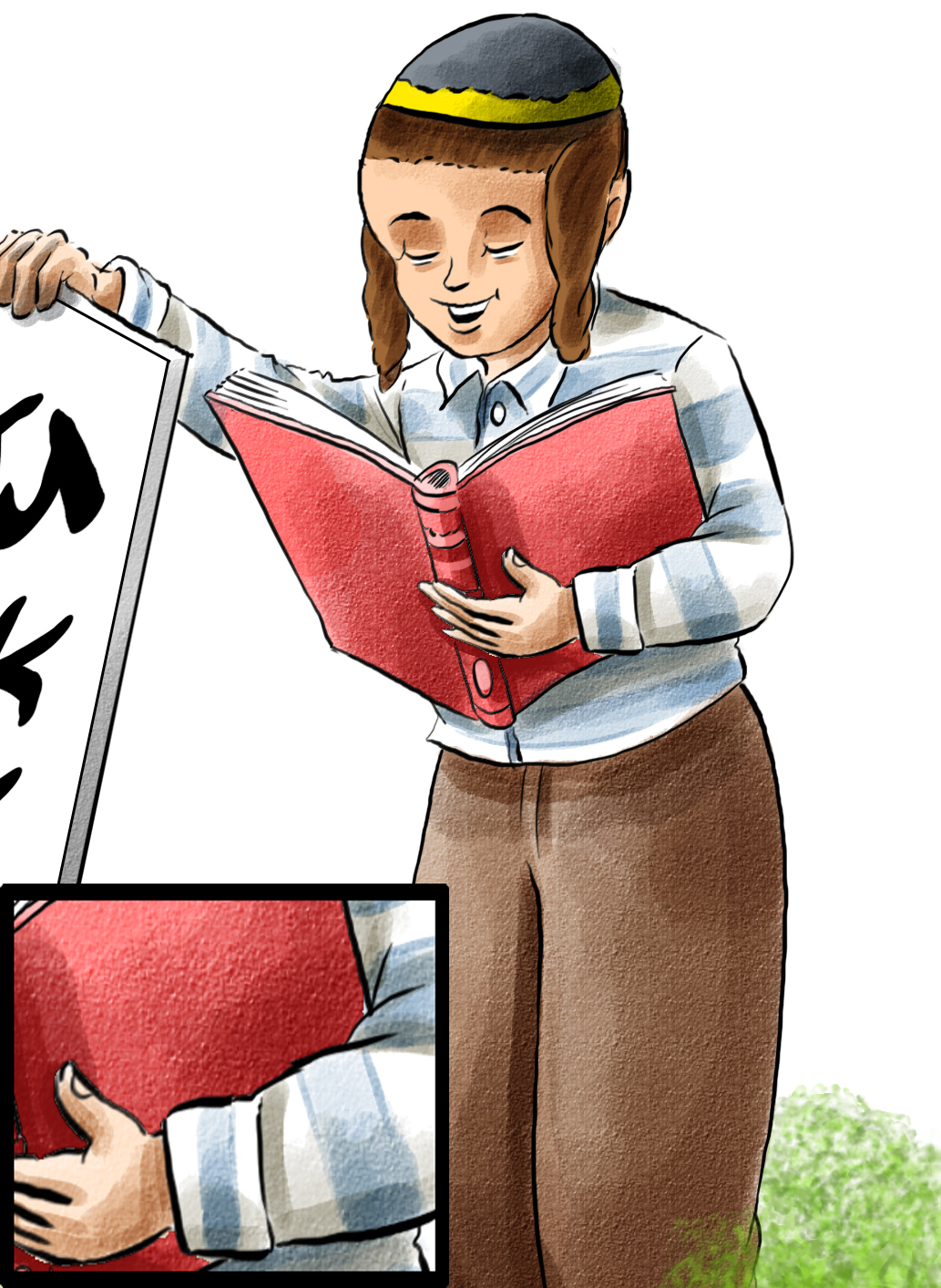 עכשיו שמתי לב שאכן יש טקסטורה לנייר בעיקר במכנס החום של הילד מימין.