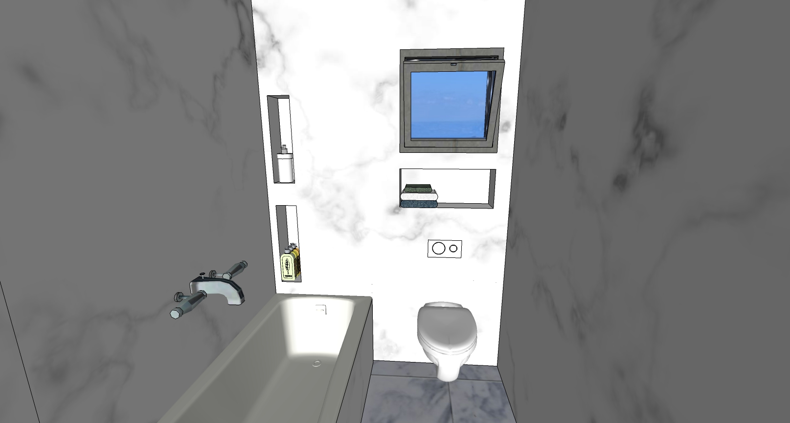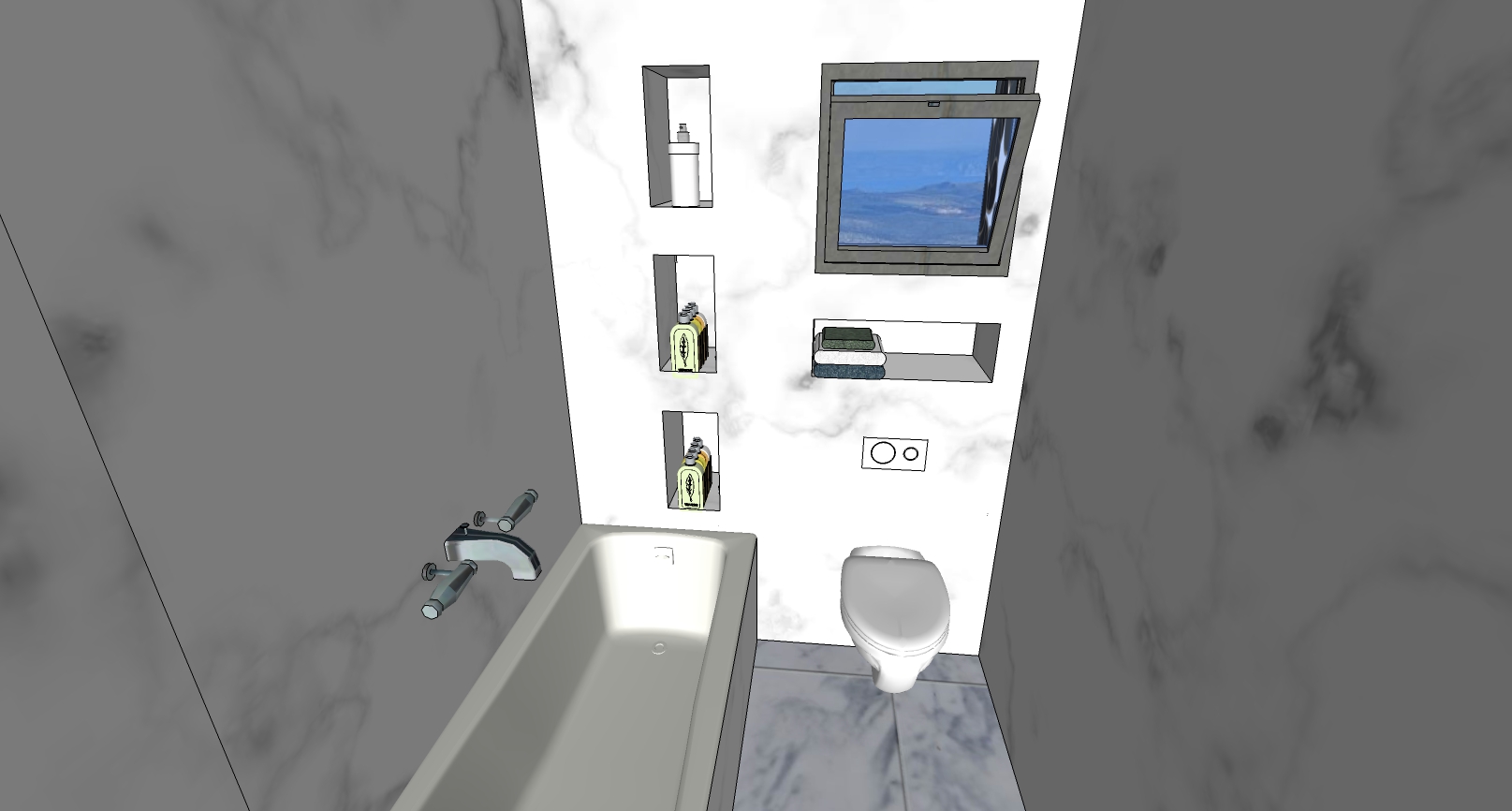 אני מתכוונת לסגור את כל הקו שמעל האסלה בלי להשאיר נישה ולהאיר נישה באותו עומק רק מעל האמבטיה