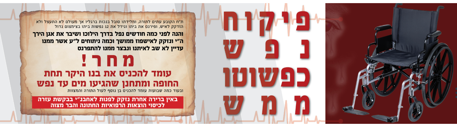 בימים אלו הגורל תלוי בידינו 'להעמידו על רגליו' כי זה פיקוח נפש ממש