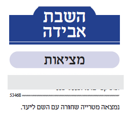 "נמצאה מטריה על שם ליעד המאבד יוכל לקבלו על פי סימנים אצל ר' יעקב",