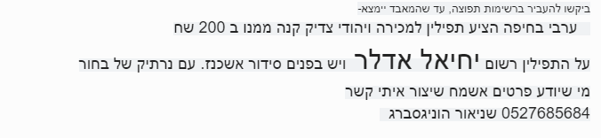 נמצא נמצאו תפילין ע"ש יחיאל אדלר