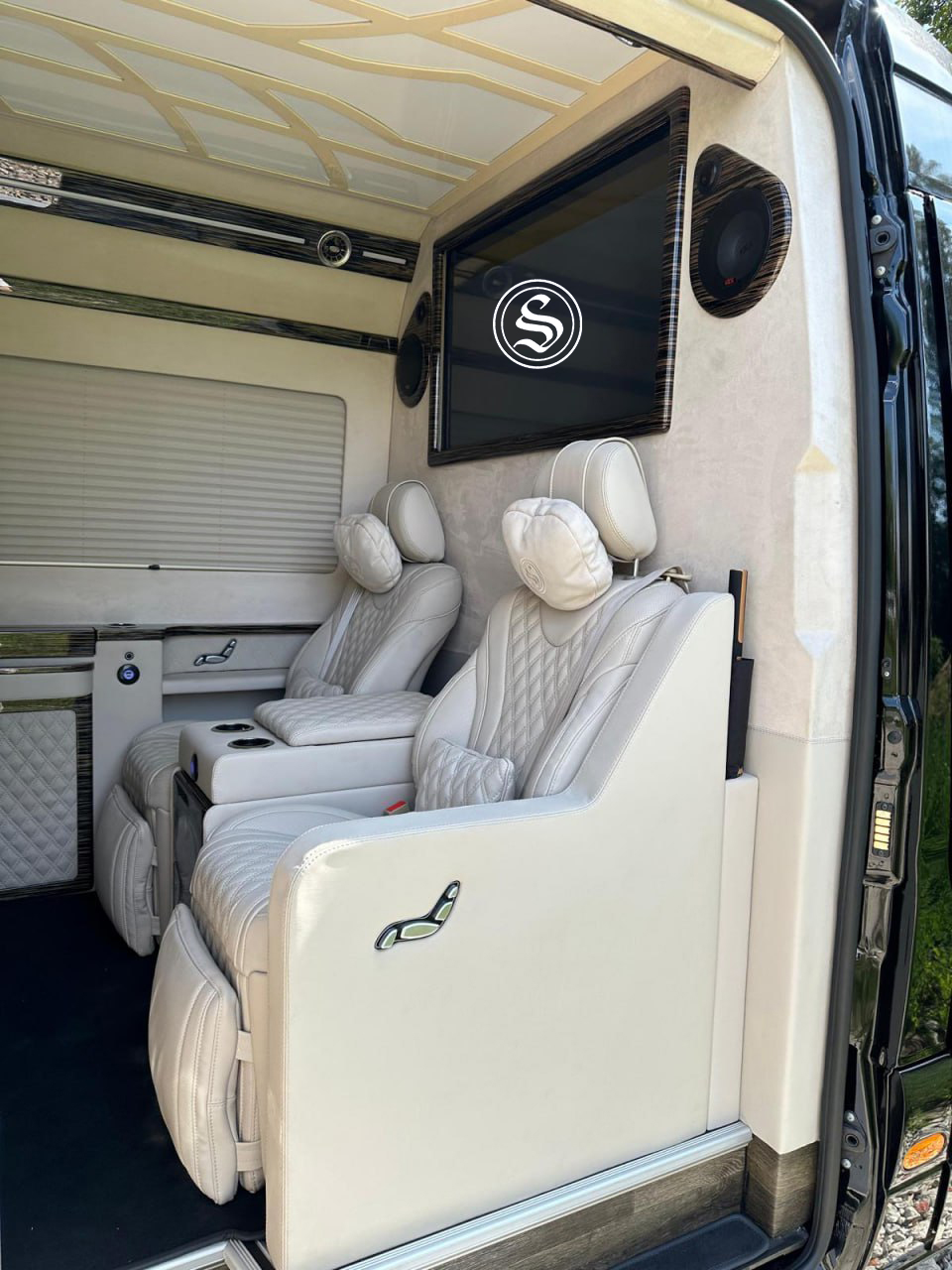 רכב ספרינטר VIP בקראקוב, עם 7 מושבים שנהפכים למיטה, עם מקרר, וויפי, מסכים, ועוד פינוקים.
