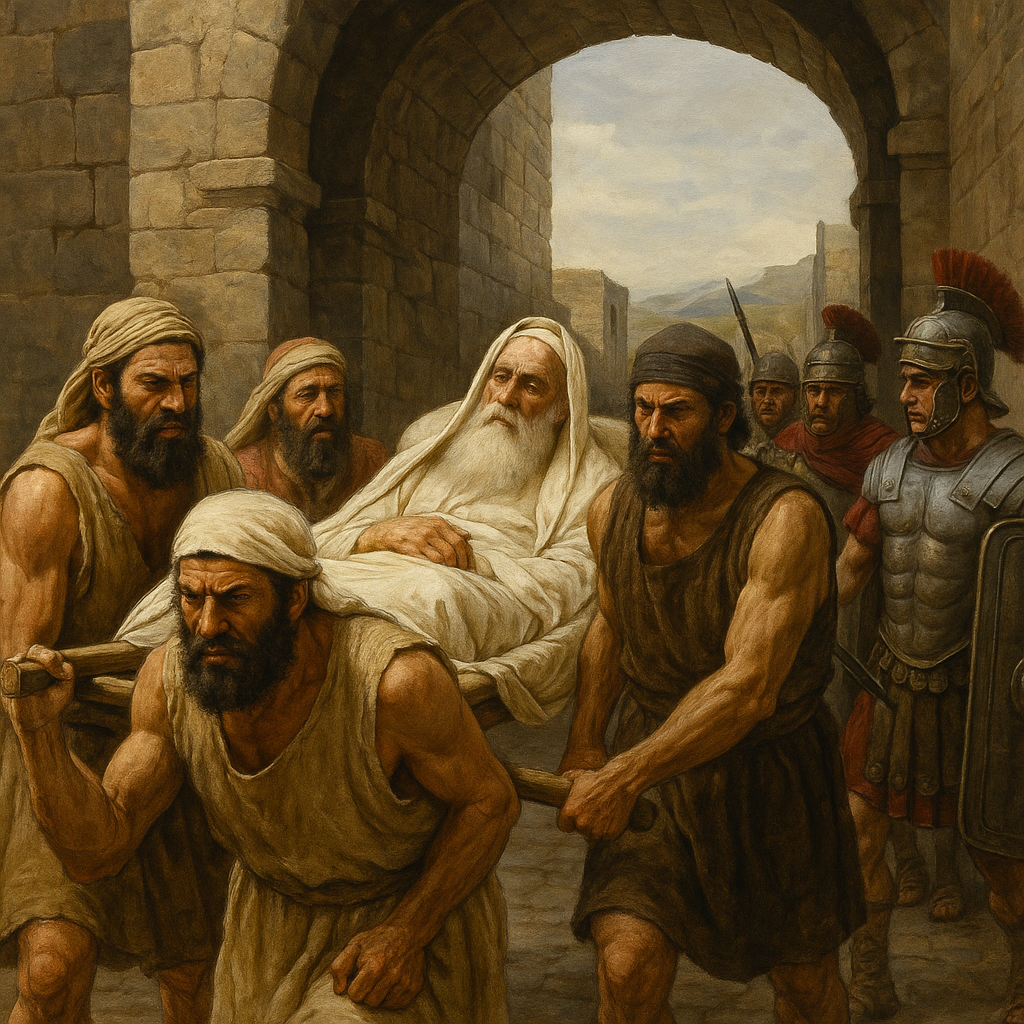 ועיקר העיקרים שלא עושים הלויה לאדם חי...זה אמור להיות ''קבוצת הבריונים של אבא סיקרא (אחיינו של רבי יוחנן) מעבירה את מיטתו של רבי יוחנן בן זכאי אל מחוץ לחומות ירושלים'''.