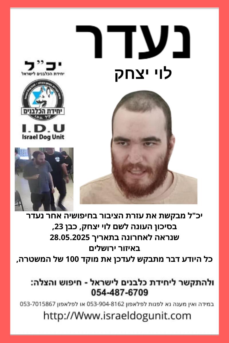 בזק״א ובמשטרה פנו לציבור בבקשה דחופה לסייע באיתורו. "כל היודע דבר על מקום הימצאו או כל פרט שיכול לסייע – מתבקש ליצור קשר עם מוקד זק״א בטלפון 1220 או עם מוקד המשטרה 100", נמסר.