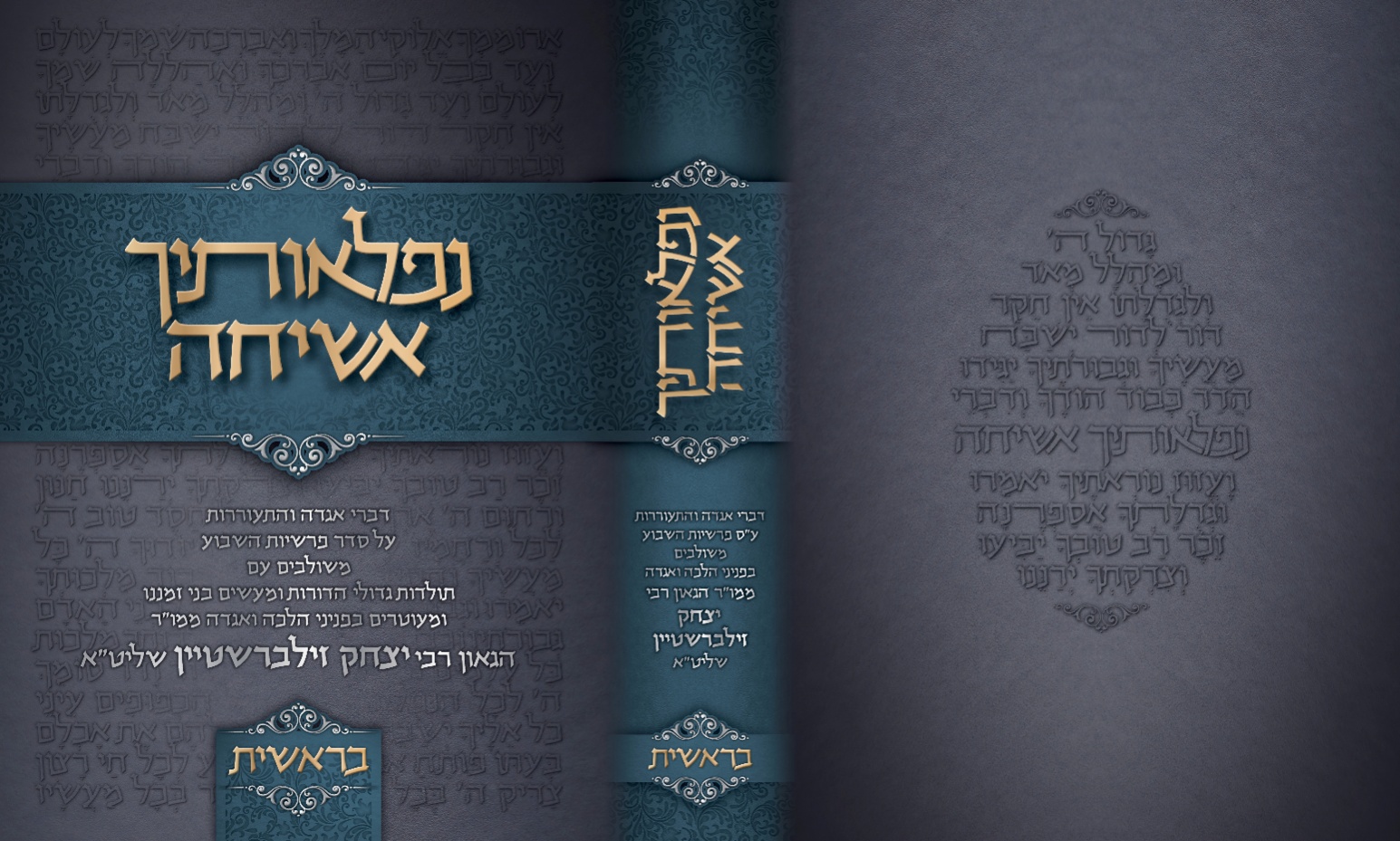 הנה כריכה לסדרה חדשה של הרב זילברשטיין שליט״א שעתידה לראות אור בקרוב בשם ׳נפלאותיך אשיחה׳ הלכתי על סגנון חדשני משהו, אולם ׳הרטבתי׳ אותו עם מעט עיטורים, קיימת התלבטות האם ללכת על הכיוון שהל׳ והש׳ מחוברות או על הגרסה המופרדת, לדעתי, יש משהו ׳נפלא׳ בזה של׳ והש׳ מחוברות וזה מתחבר לשם הסדרה - ׳נפלאותיך... אשמח לשמוע את חוות דעתכם