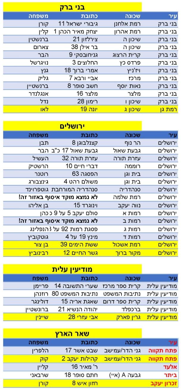 בטלפון שניתן למעלה ניתן לראות אלו סניפים קיימים וכשבוחרים עיר הוא נותן את הכתובת של המשפחה.