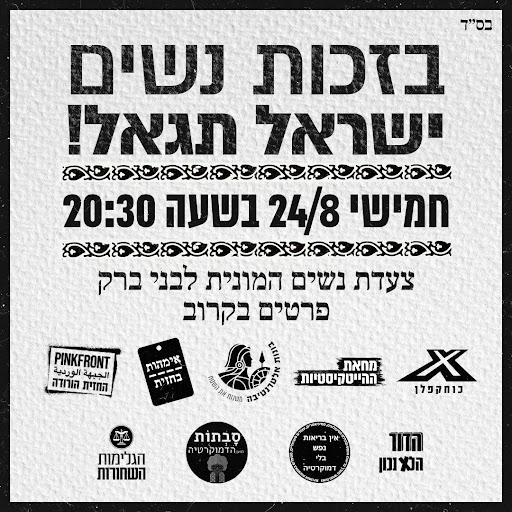 פוליטי נשות המחאה באות ביום חמישי לבני ברק