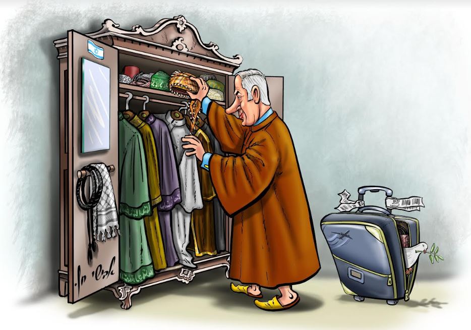 "נזיר או מלך? איפה שמתי את האביזרים המשלימים להופעה מרתקת??" זו הקריקטורה שפורסמה בעיתון משפחה, מאת הצייר אבישי חן.