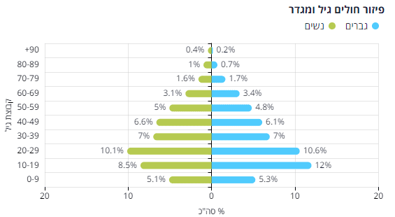 בלוח בקרה של משרד הבריאות מתפרסם כל יום הנתונים של המאומתים לפי גיל