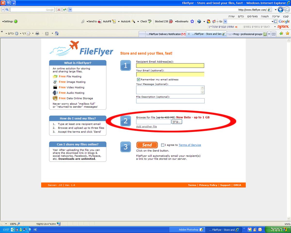 יש אתר שנקרא פייל פליי שאפשר לעלות בו עד 1 גיגה