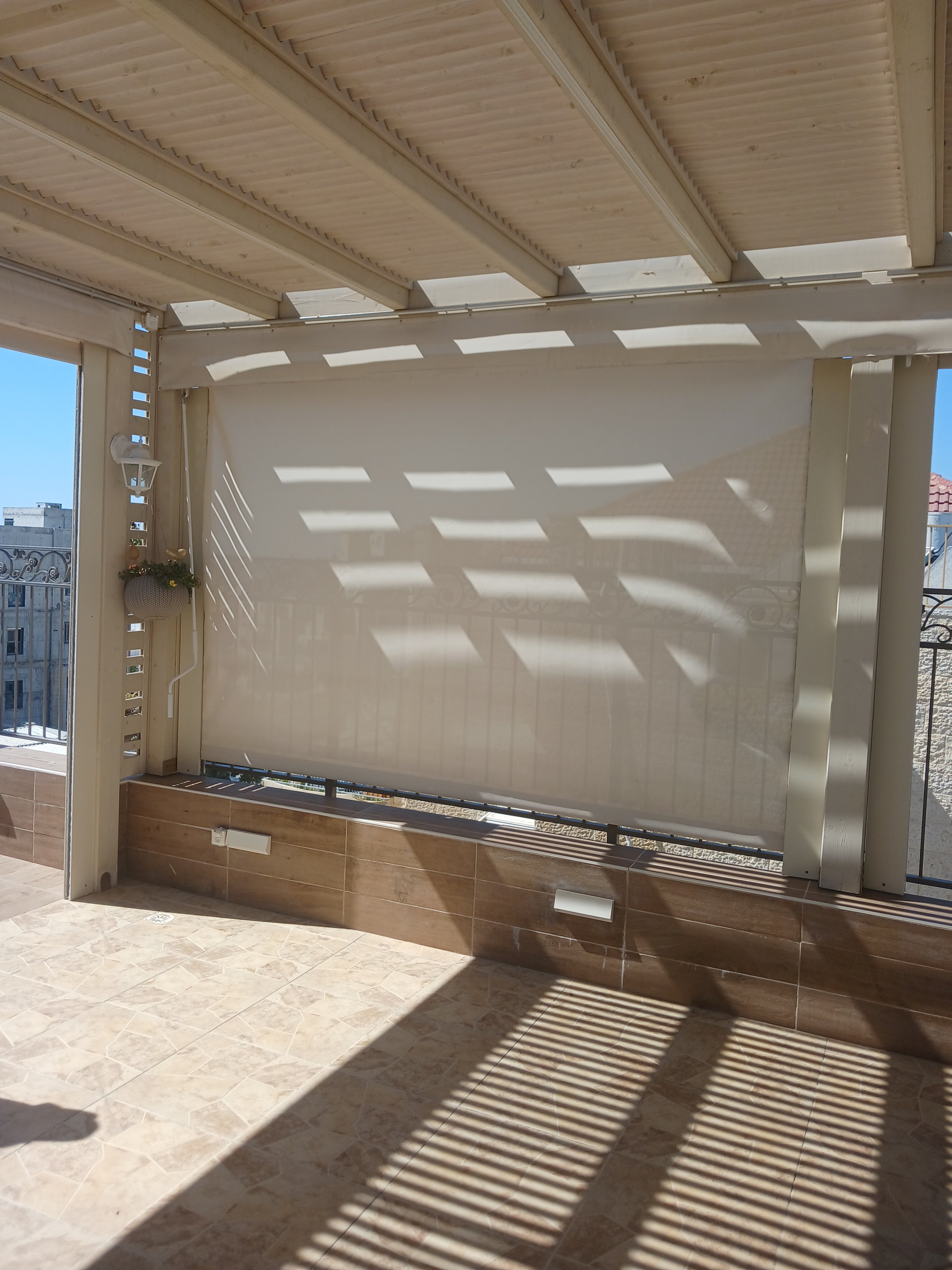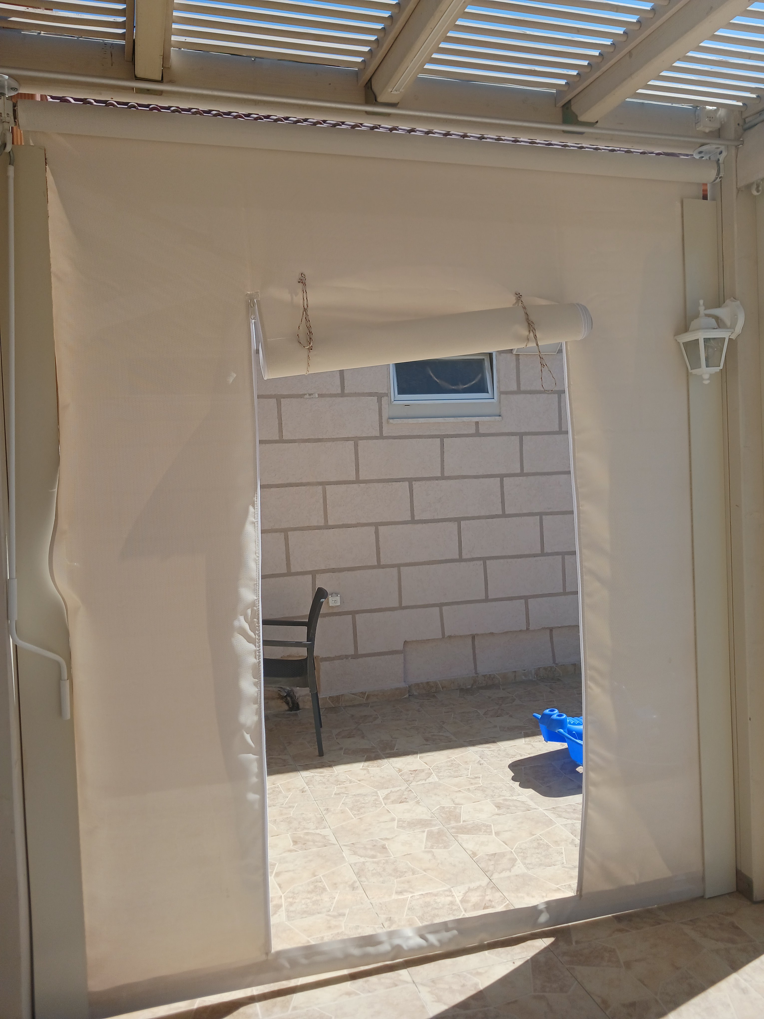 מנסיון דומה חיפו סביב הסורגים ביוטה לבן והפרגולה עם לייסטים למטה סגורה בנפרד עם וילון. בחצי מטר העליון או פחות משאירים פתוח כדי לתת לרוח לעבור. (אחפש תמונה אם לא מובן)