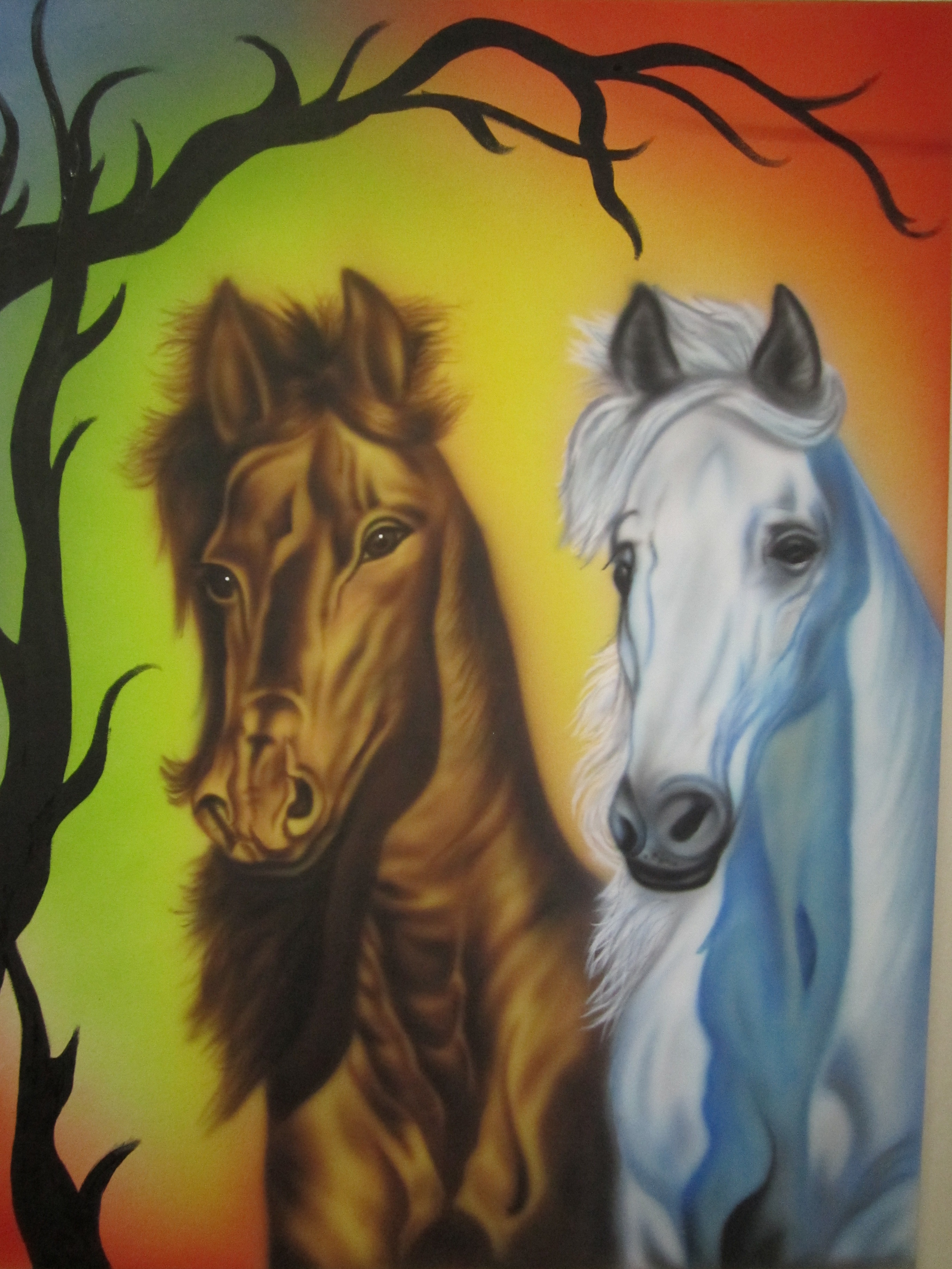 אני מציירת ומורה לציורי קיר וחולצות בטכניקת ה"air-brush"- מכחול אוויר.