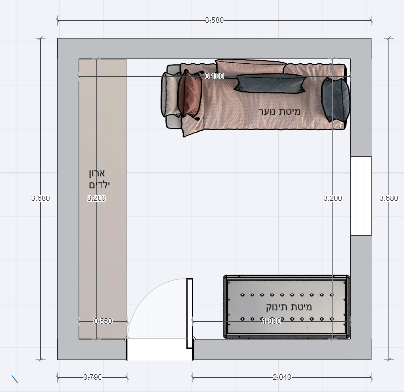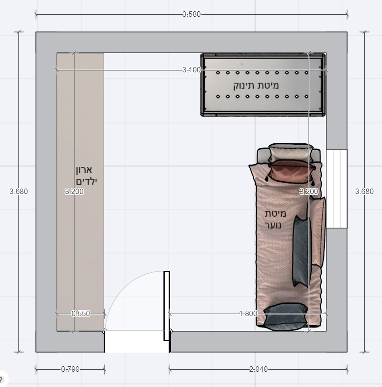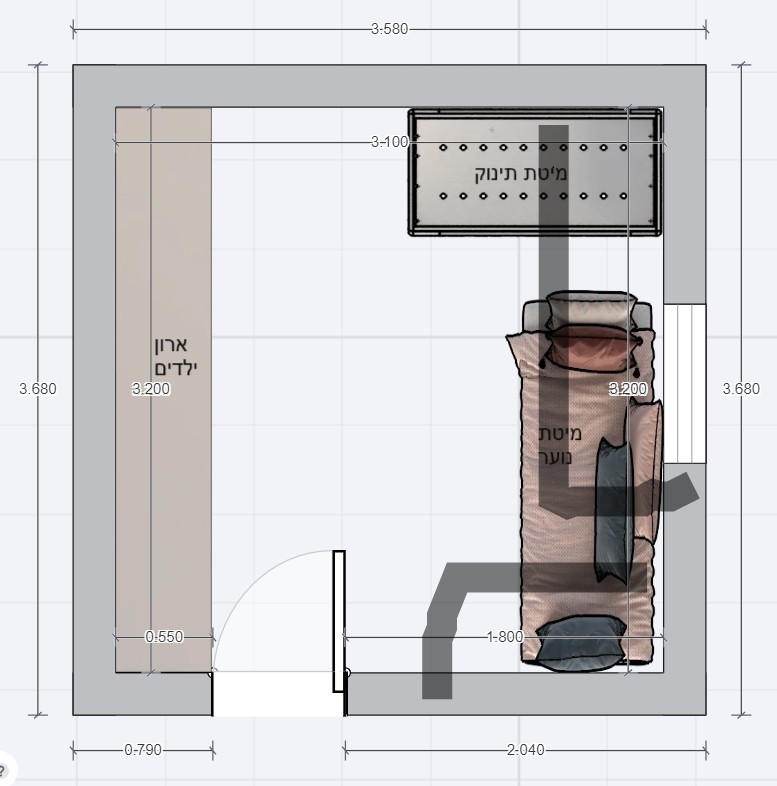 שהמיטת תינוק תהיה בכניסה ואחריה מיטת נוער