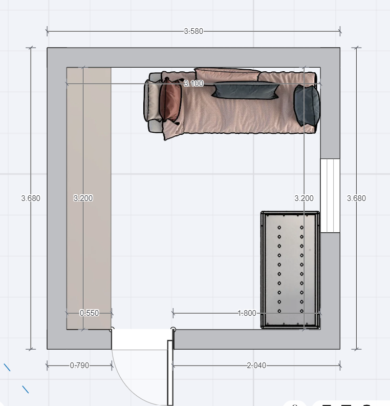זה השרטוט של חדר השינה המיועד (פירוט מתחת לתמונה):