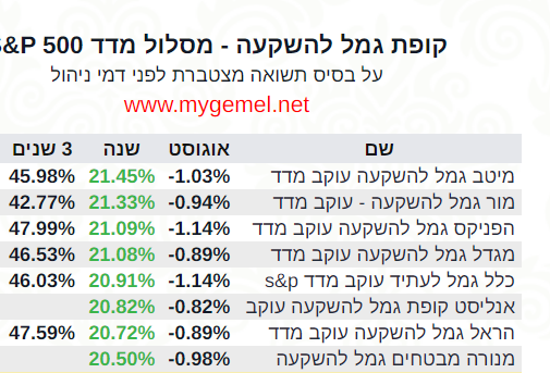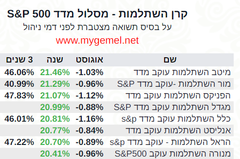 2.מעניין אותי מה היתה התשואה בקרנות סל s&p אמריקאיות אשמח אם מישהו יכול להעלות נתונים