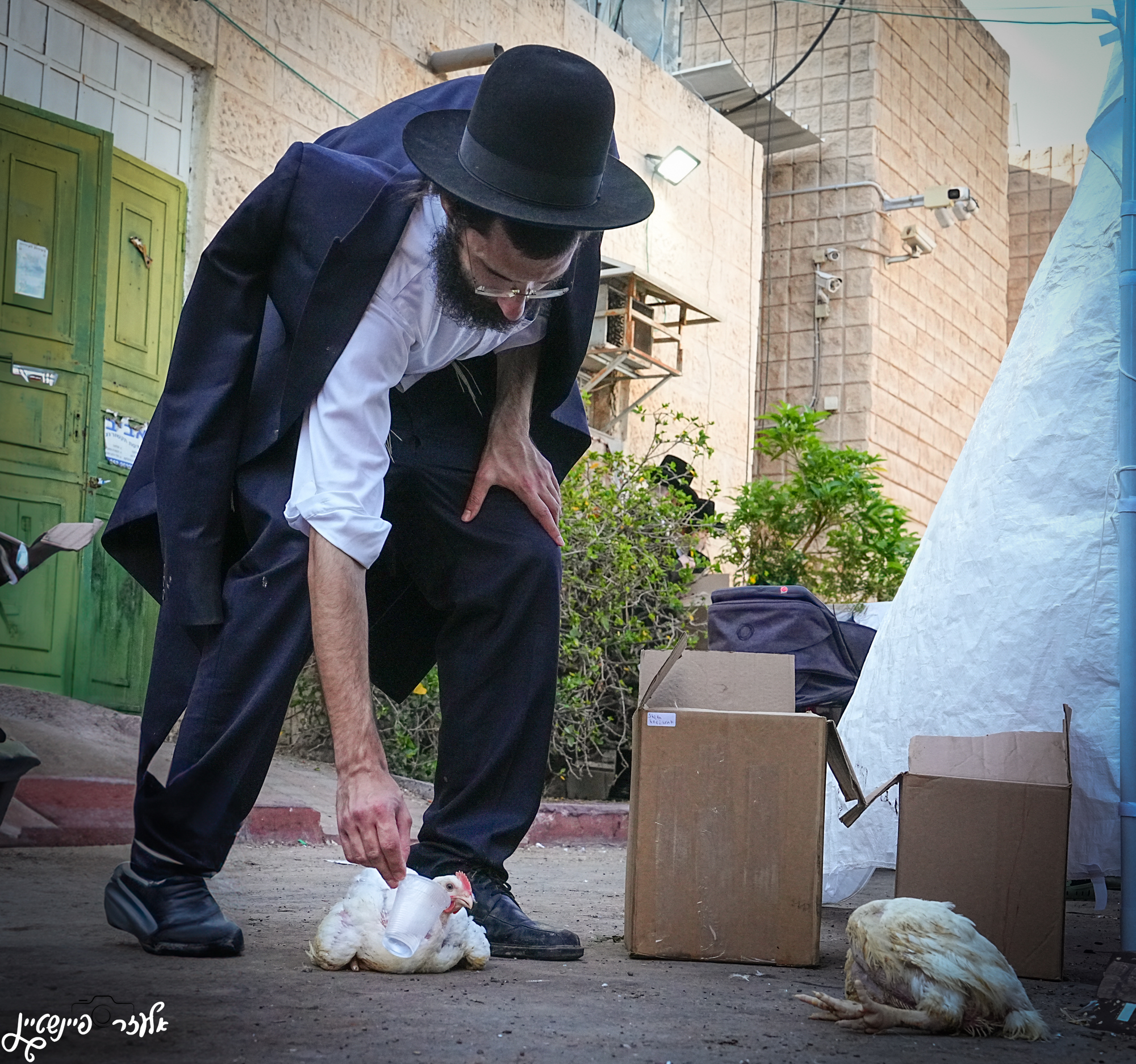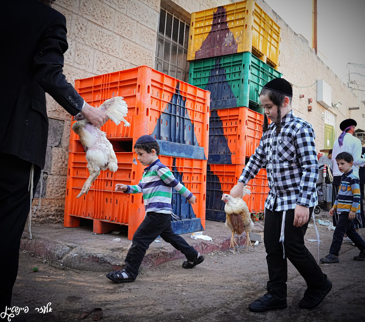 בתמונות שלי במנהג הכפרות, ניסיתי ללכוד את היופי, למרות כל מה שמסביב. כן, יש לכלוך, יש חוסר היגיינה שמלווה את המנהג הזה ברחובות – נוצות שמתפזרות באוויר, דם שניגר על האדמה, וכבישים שמכוסים באבק מהתרנגולות המיועדות לכפרה. כל אלה נוכחים, אבל בחרתי לחסוך מהם ולמקד את העדשה במקומות אחרים.