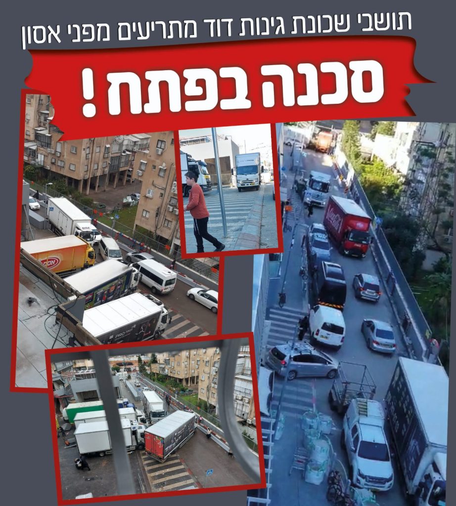 כדי להמחיש את הסכנה מציינים שתי מקרים בשכונה, שכמעט הסתיים באסון: אמש (שני) בשעה שש בערב ילדה כמעט נפגעה, והבוקר נמנע אסון כבד כשאחת המשאיות שמביאות את הסחורה לסופר – עשתה רוורס ונכנסה בילדה. בחסדי שמיים היא יצאה ללא נזק.