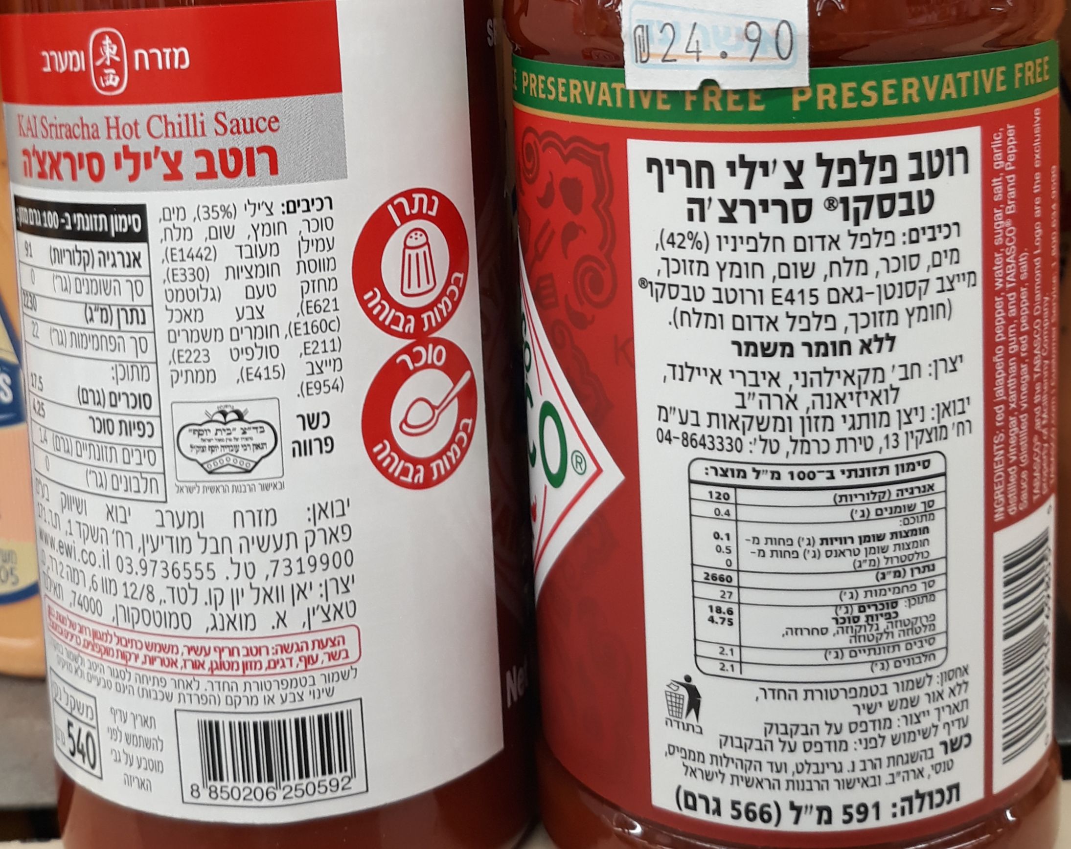 @shira bira היום הייתי באושר עד, מצאתי שם רוטב סרירצ'ה הימני של טבסקו בלי הכשר מוכר, השמאלי של בית יוסף וגם מלאאאא חומרים משמרים וגלוטמט וכל מיני רעלים.