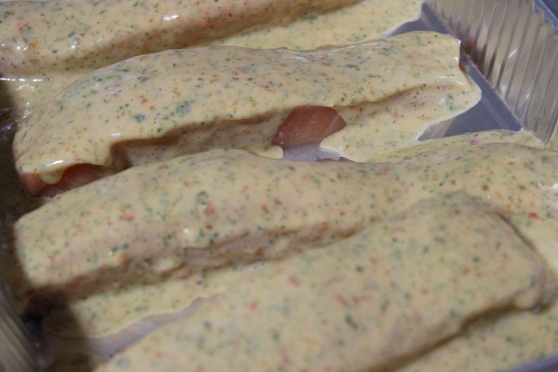 שופכים על מנות הפילה שבתבנית
