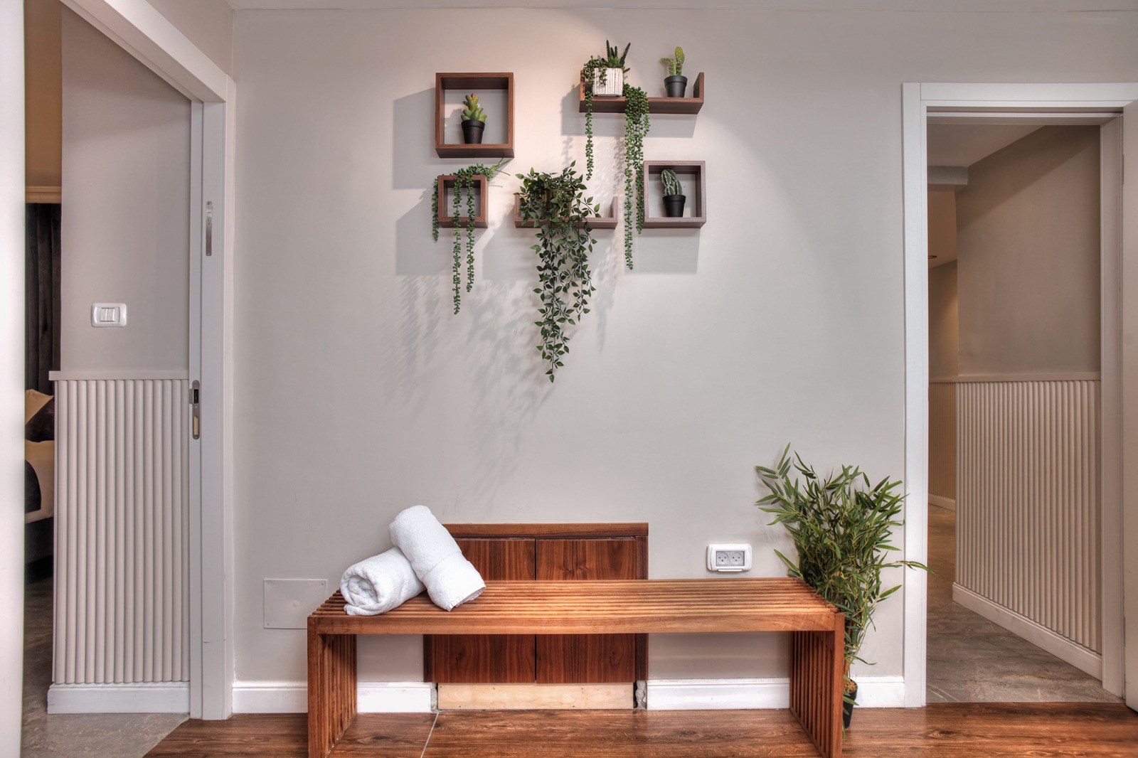 בחלל של ספא שעיצבתי עשיתי ללקוחות ספסל מעץ