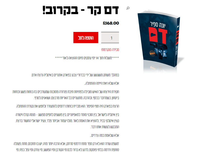 דם קר של יונה ספיר עולה 78 ש"ח באור החיים ו-68 ש"ח דרך האתר של יונה ספיר