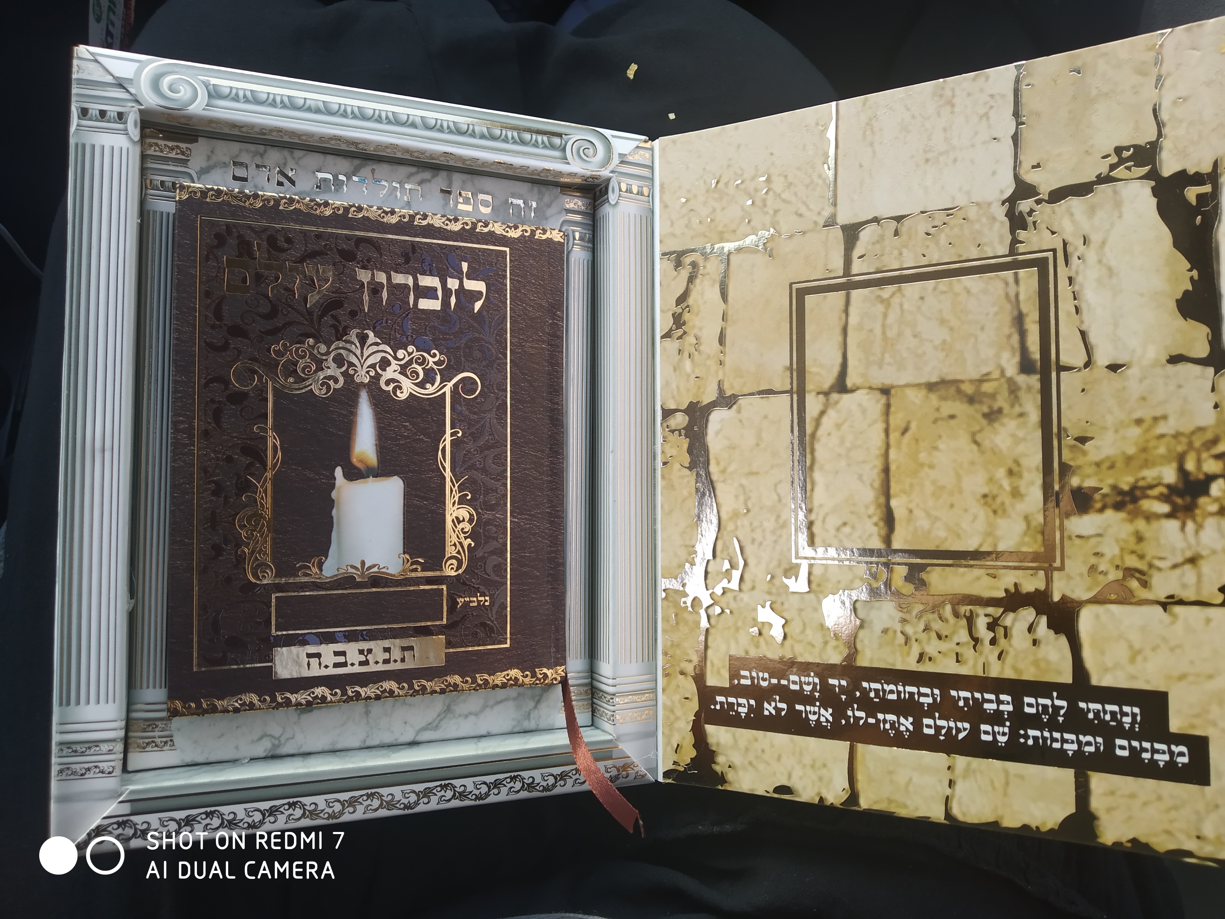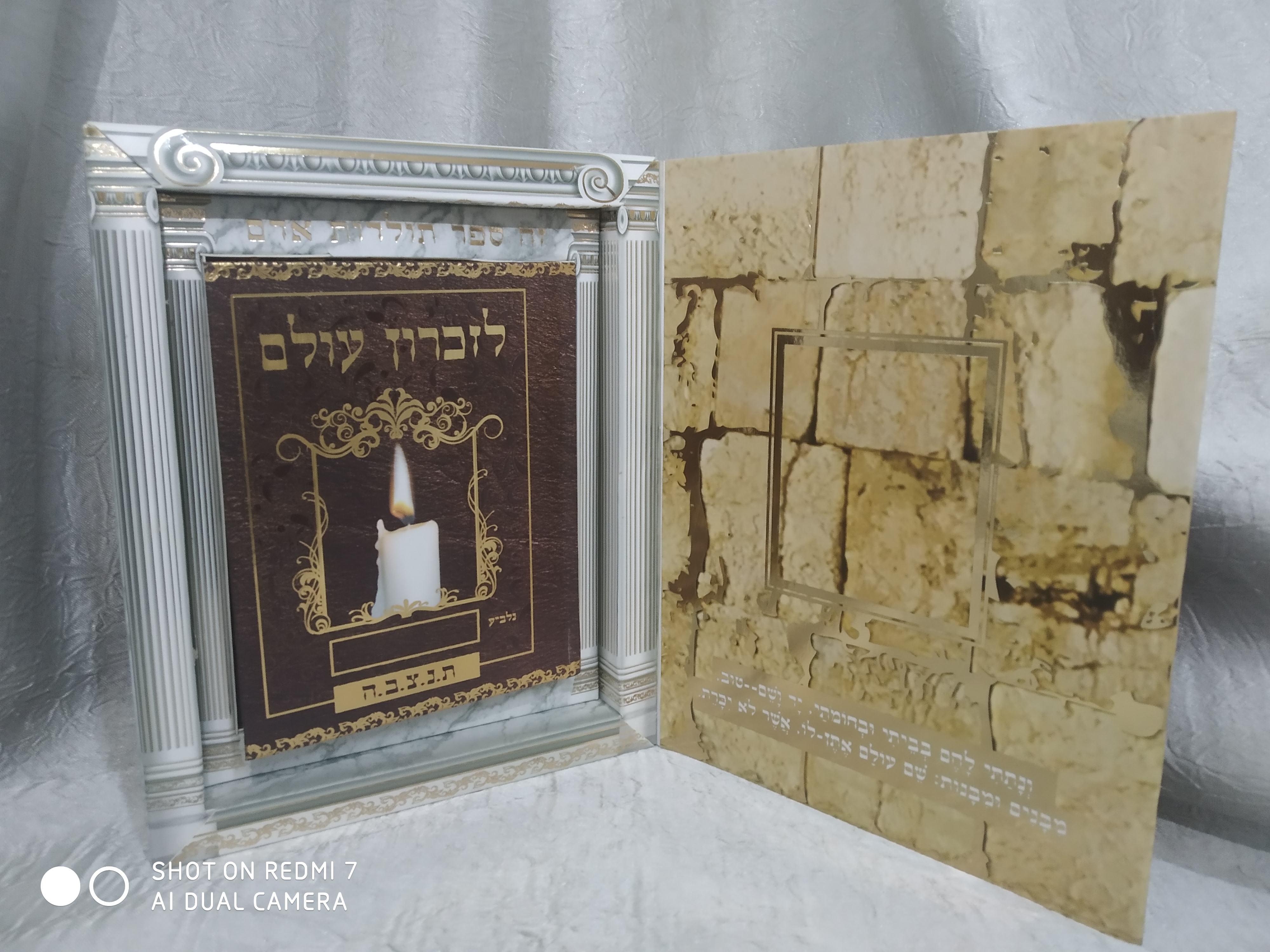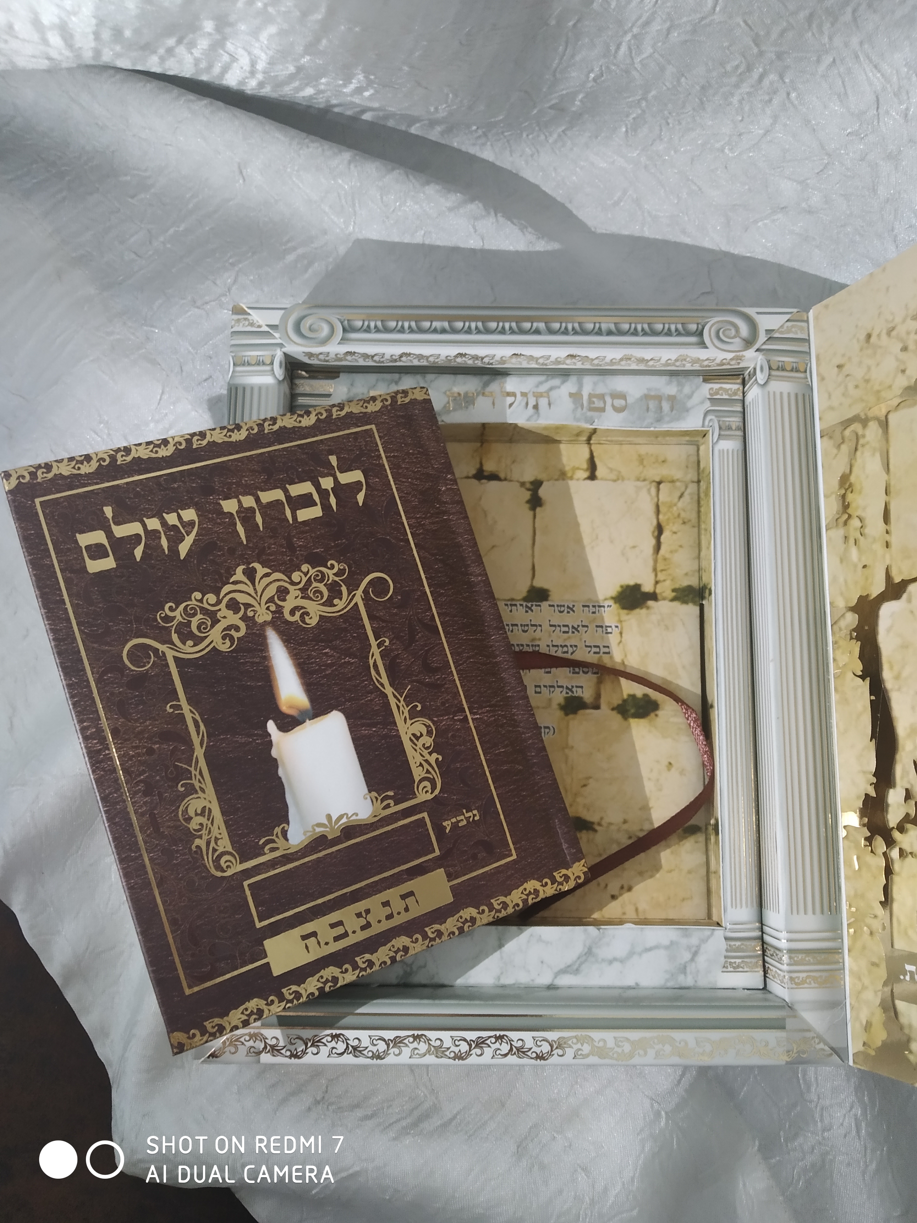בתוך המארז יש ספר ההנצחה עם הלכות ומנהגי אבלות.תיקון הנפטרים.תהלים לפי א-ב.