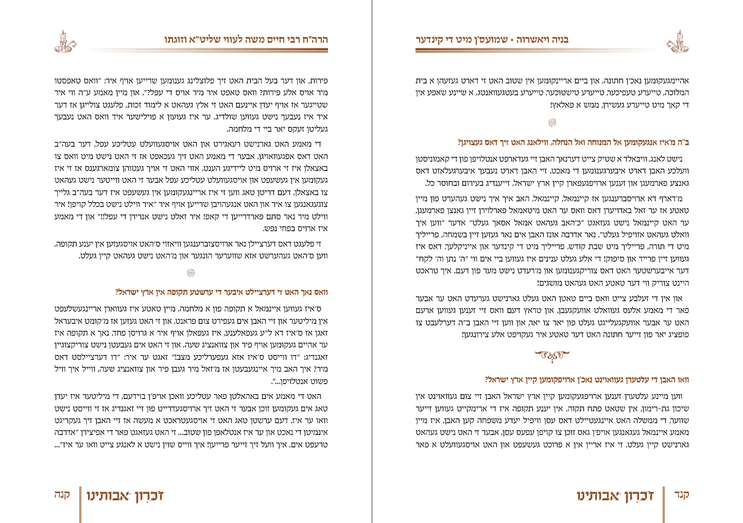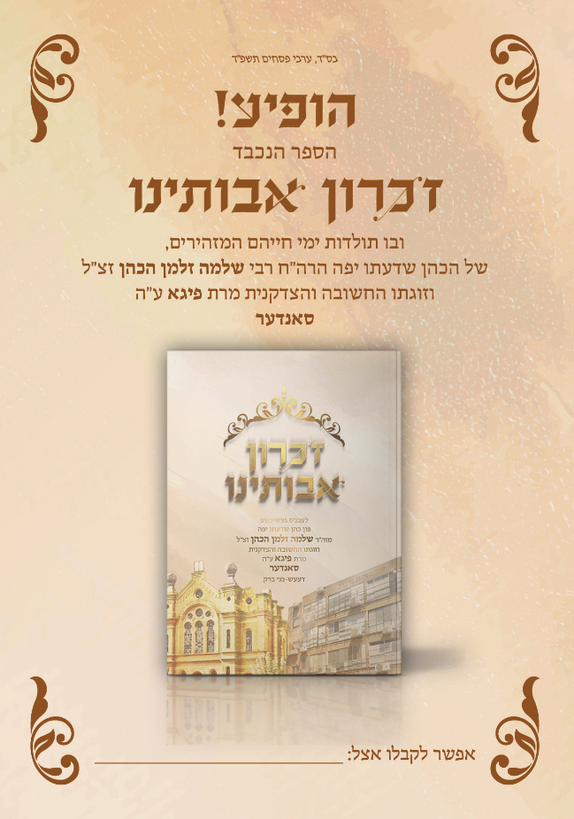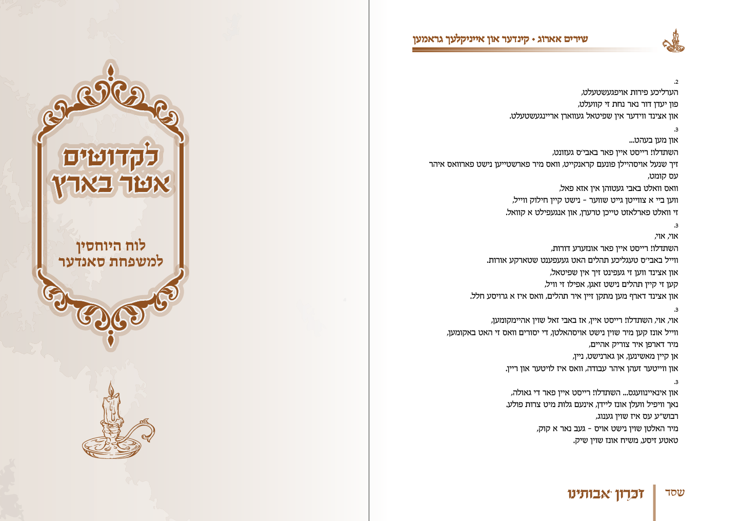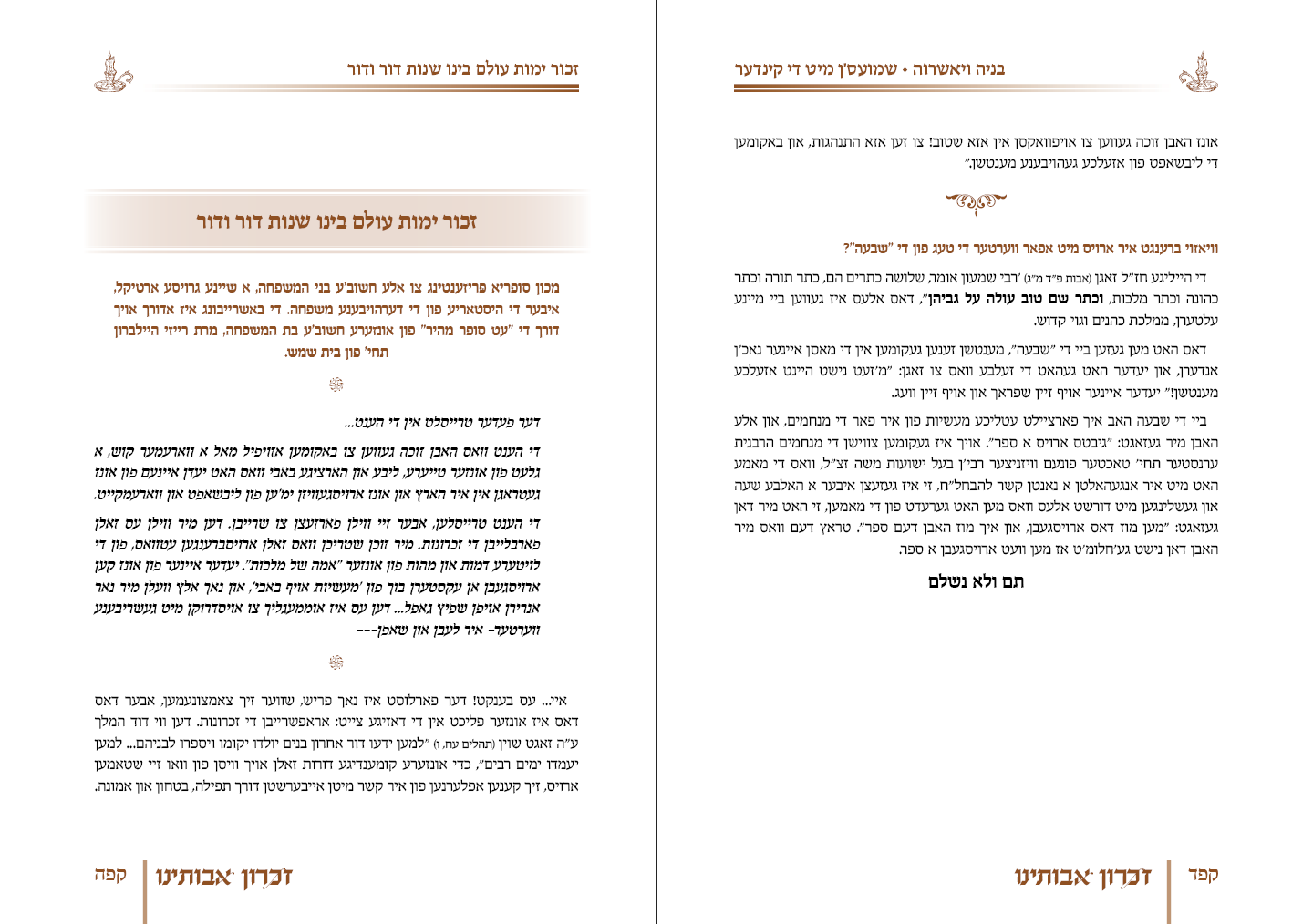 ספר זכרון לנשמותיהם של בני זוג מיוחדים מאוד, אודים מוצלים מאש, שרידים לדור דעה. הספר כתוב באידיש מתוך הקלטות של בני המשפחה. בס"ד זכינו להפיק את הספר כולו, משלב העריכה הבסיסית ועד אחרי ההדפסה בתוך חמשה שבועות...