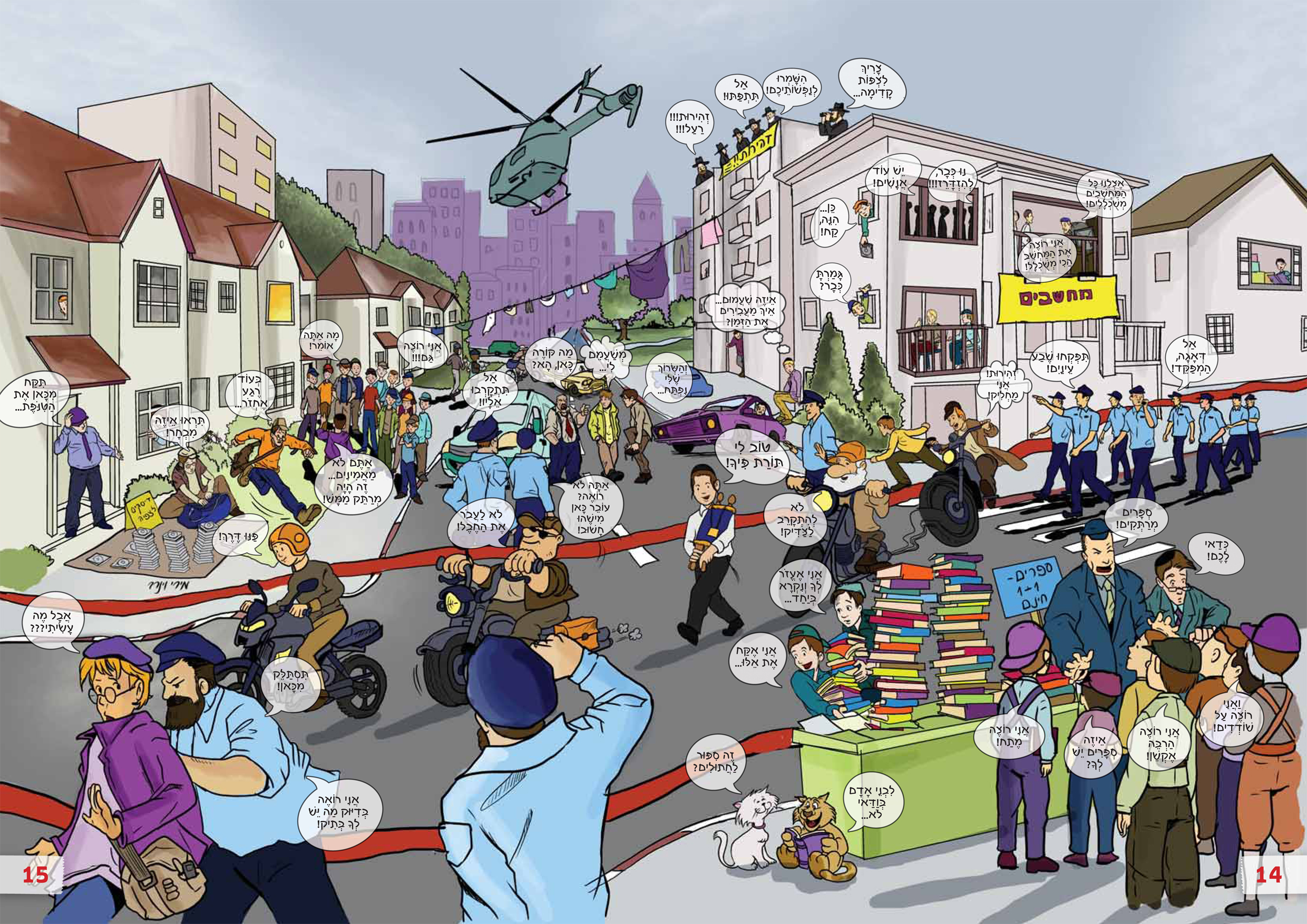 הספר מכיל ציורים של השכונה המדוברת, ציורים עמוסי פרטים וקריקטורות.